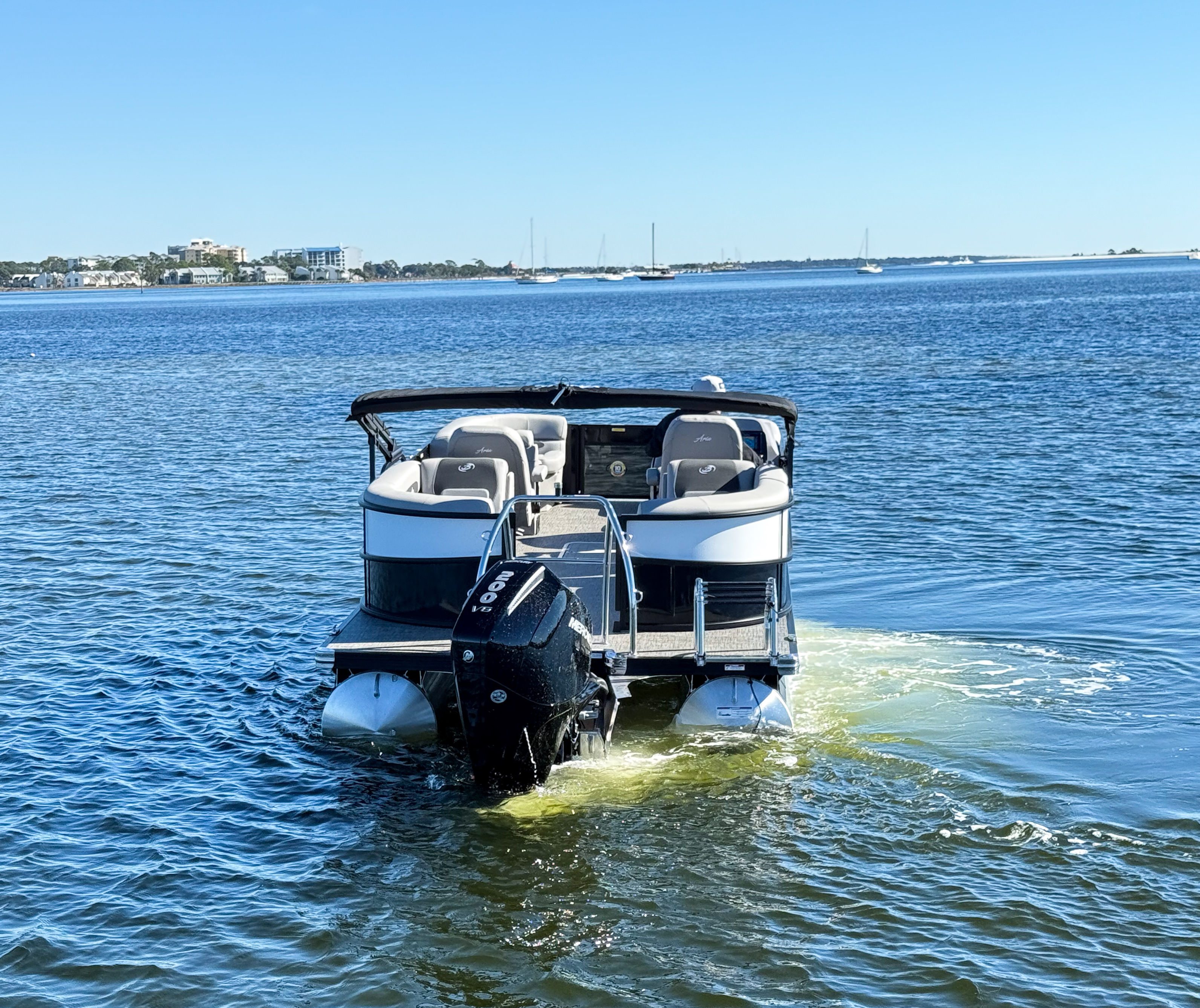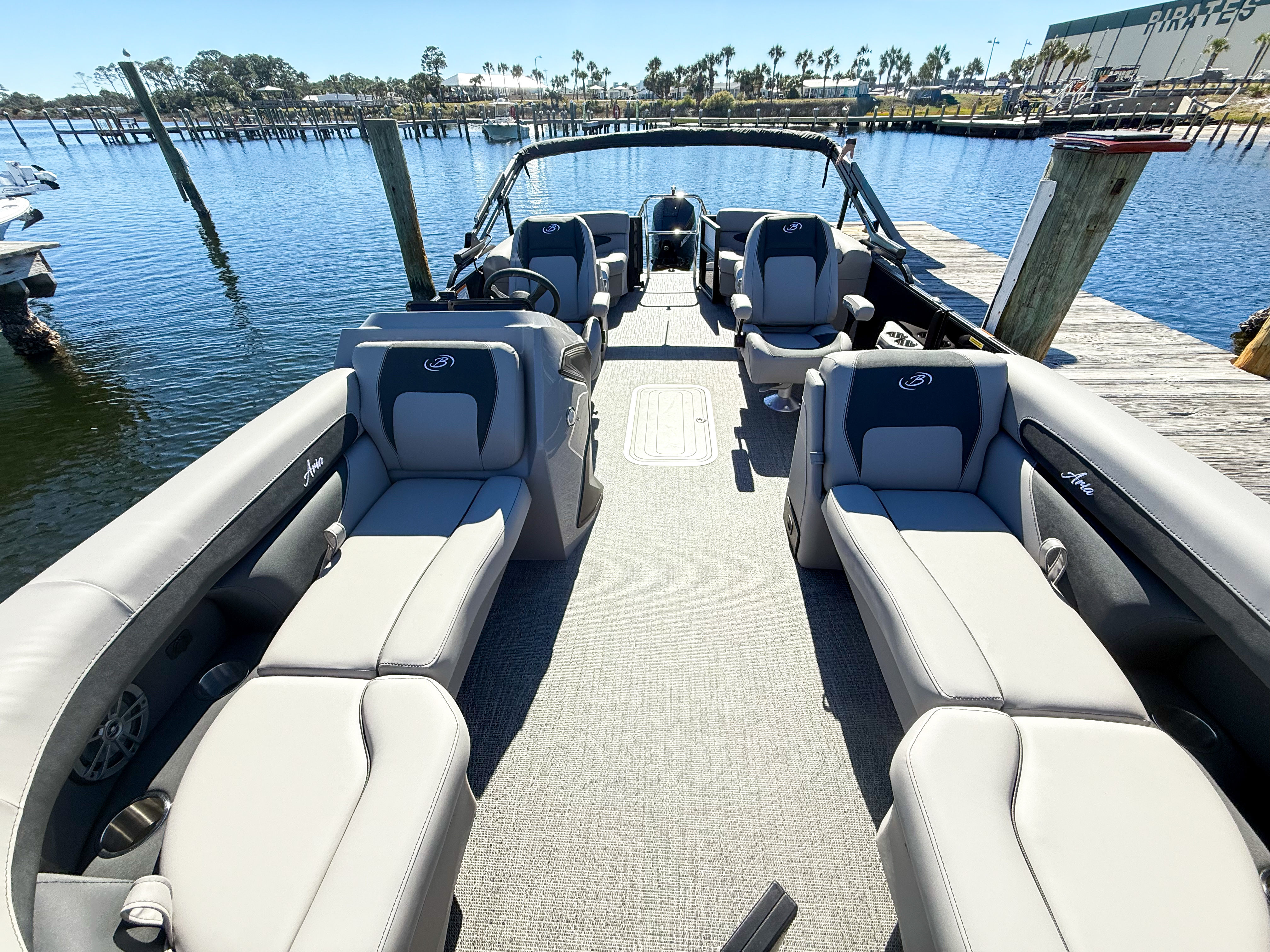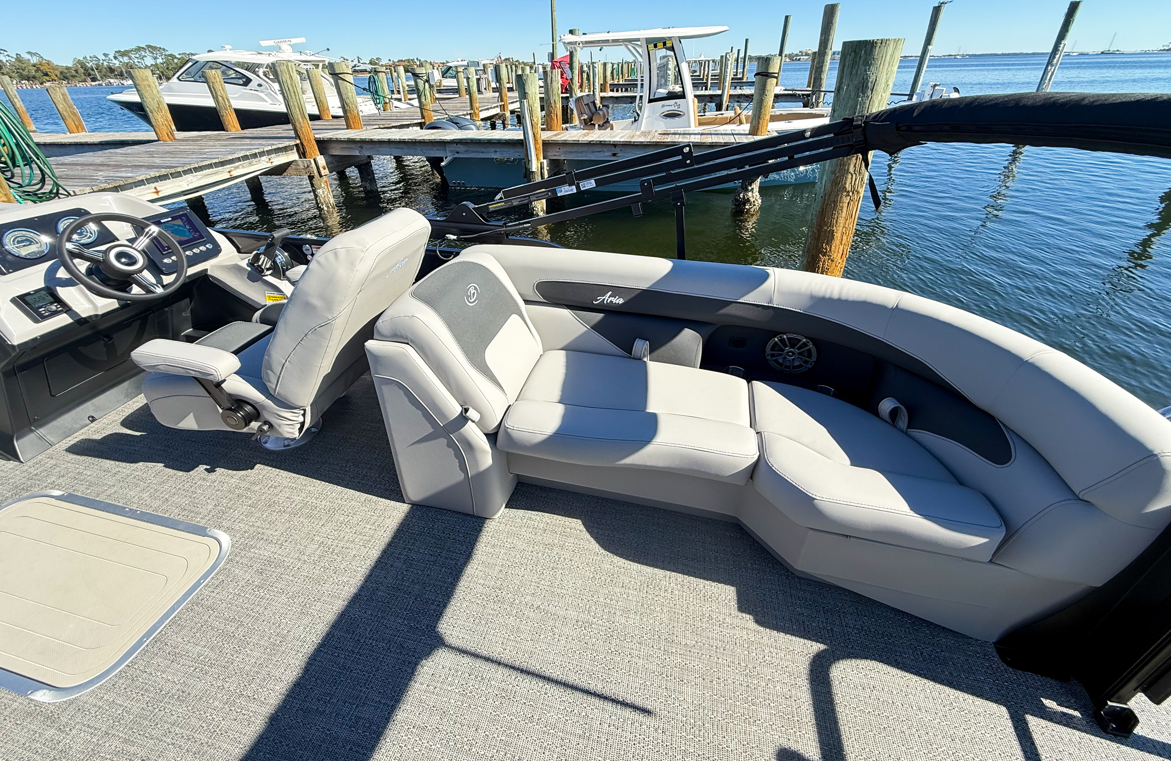 Powering the Barletta Aria A22QC-Platinum is the impressive Mercury 200L 4S engine, delivering a robust 200 horsepower for exhilarating rides and smooth cruising. The Triple Toon Package Aria ensures enhanced stability and superior handling, allowing you to glide effortlessly across lakes and rivers. With the Mercury mechanical pre-rig and power assist steering, navigating tight turns and docking is a breeze, while the stainless steel prop guarantees optimal efficiency and durability. Whether you’re cruising at a leisurely pace or picking up speed for water sports, this pontoon boat offers reliable performance and responsive control.