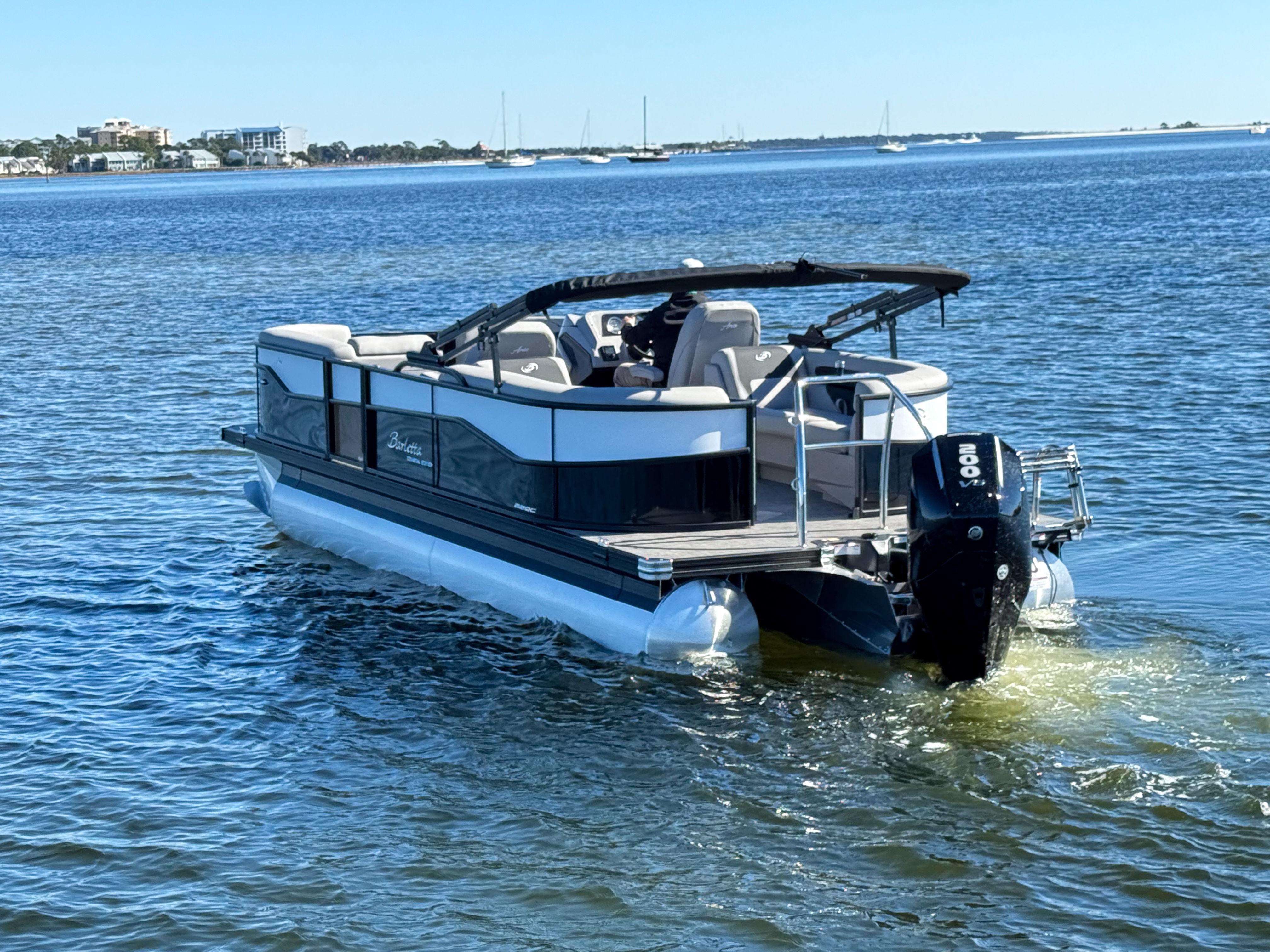 The Barletta Aria A22QC-Platinum is packed with premium features designed to elevate your time on the water. The Railskin Color Aria in Black Diamond, paired with the Winter White accent, creates a striking visual appeal, while the Blackout Package Aria adds a touch of modern elegance. Inside, the Tempest Gray furniture offers plush comfort and sophisticated style, perfectly complemented by the Amore Gray flooring for a cohesive and inviting atmosphere. The Coastal Edition Aria brings added versatility, making this pontoon boat ideal for a variety of water conditions. The Triple Toon Package Aria enhances stability and ride quality, ensuring a smooth and enjoyable journey for all passengers. Rigging with a stainless steel prop further boosts performance and longevity, making this Barletta boat for sale a smart investment for years of enjoyment.