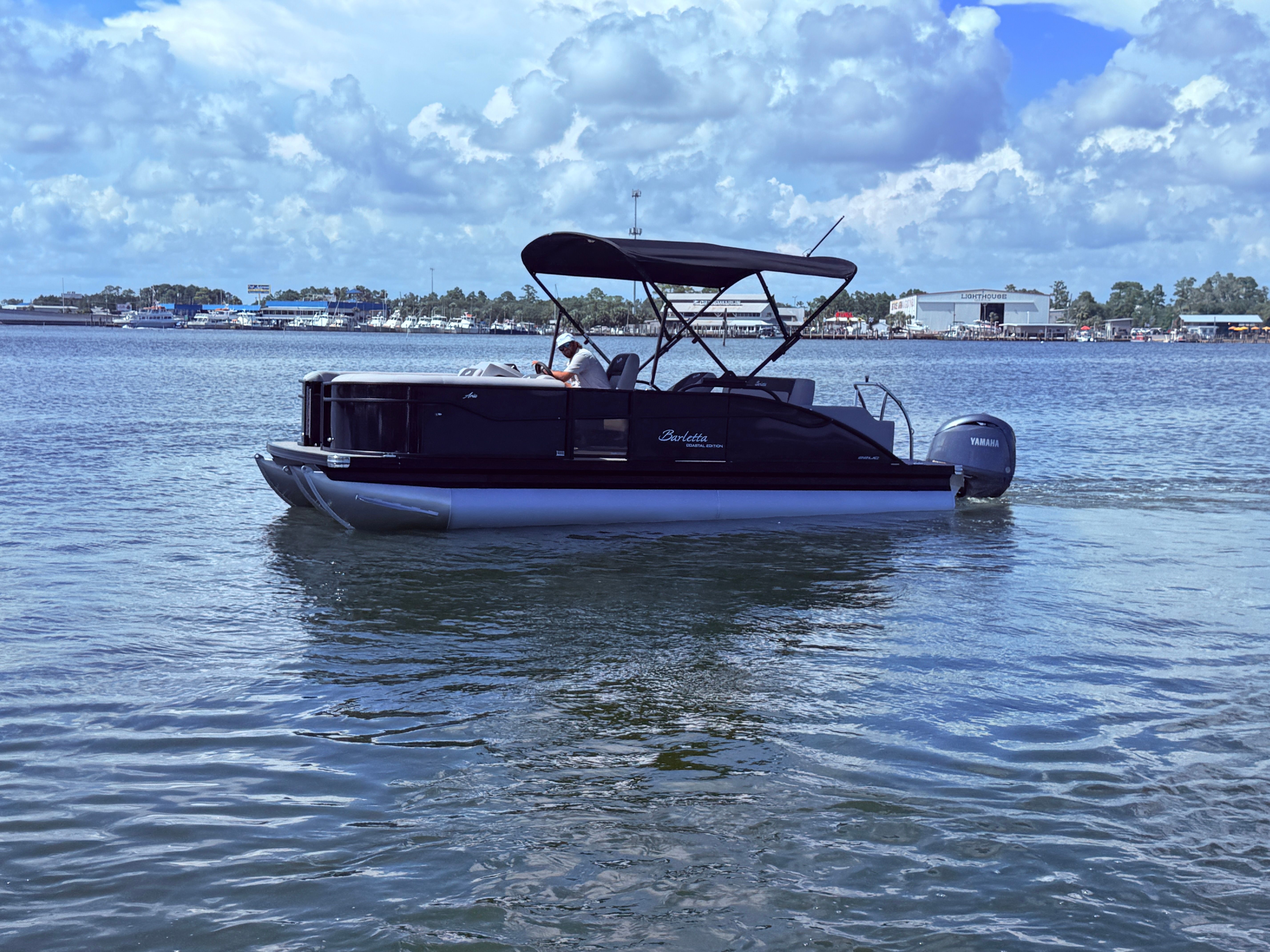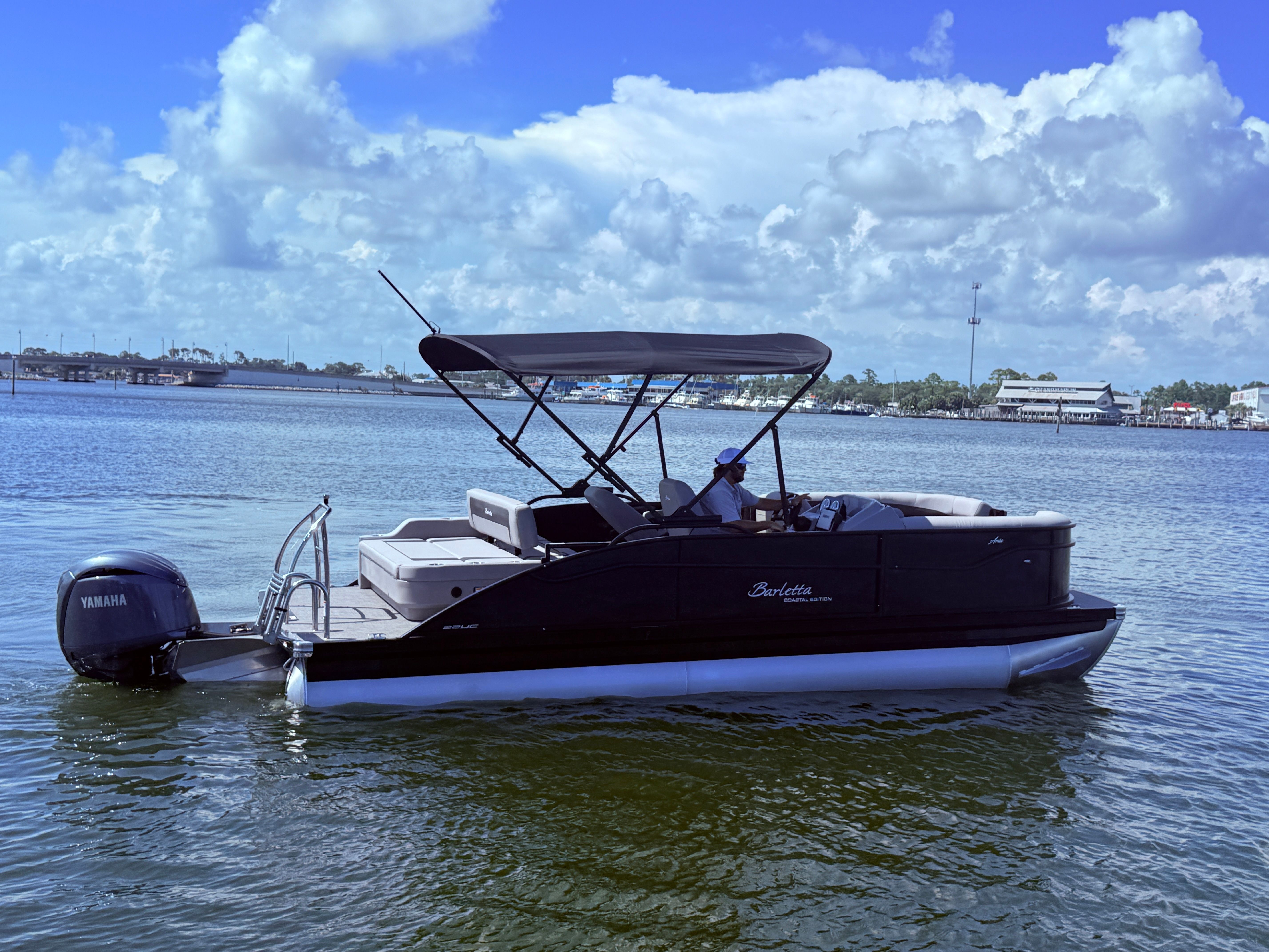 The 2026 Barletta Aria A22UC-Platinum stands out as a premier choice among pontoon boats, offering a harmonious balance of style and functionality. Measuring just over 21 feet in length, this new pontoon provides ample space for family and friends while maintaining a manageable size for easy handling and docking. The Aria A22UC-Platinum’s modern aesthetic is accentuated by the striking Black Diamond Railskin color, giving it a sophisticated and commanding presence on the water. As a new model, it comes equipped with the latest advancements in marine technology, ensuring a top-tier boating experience for years to come.