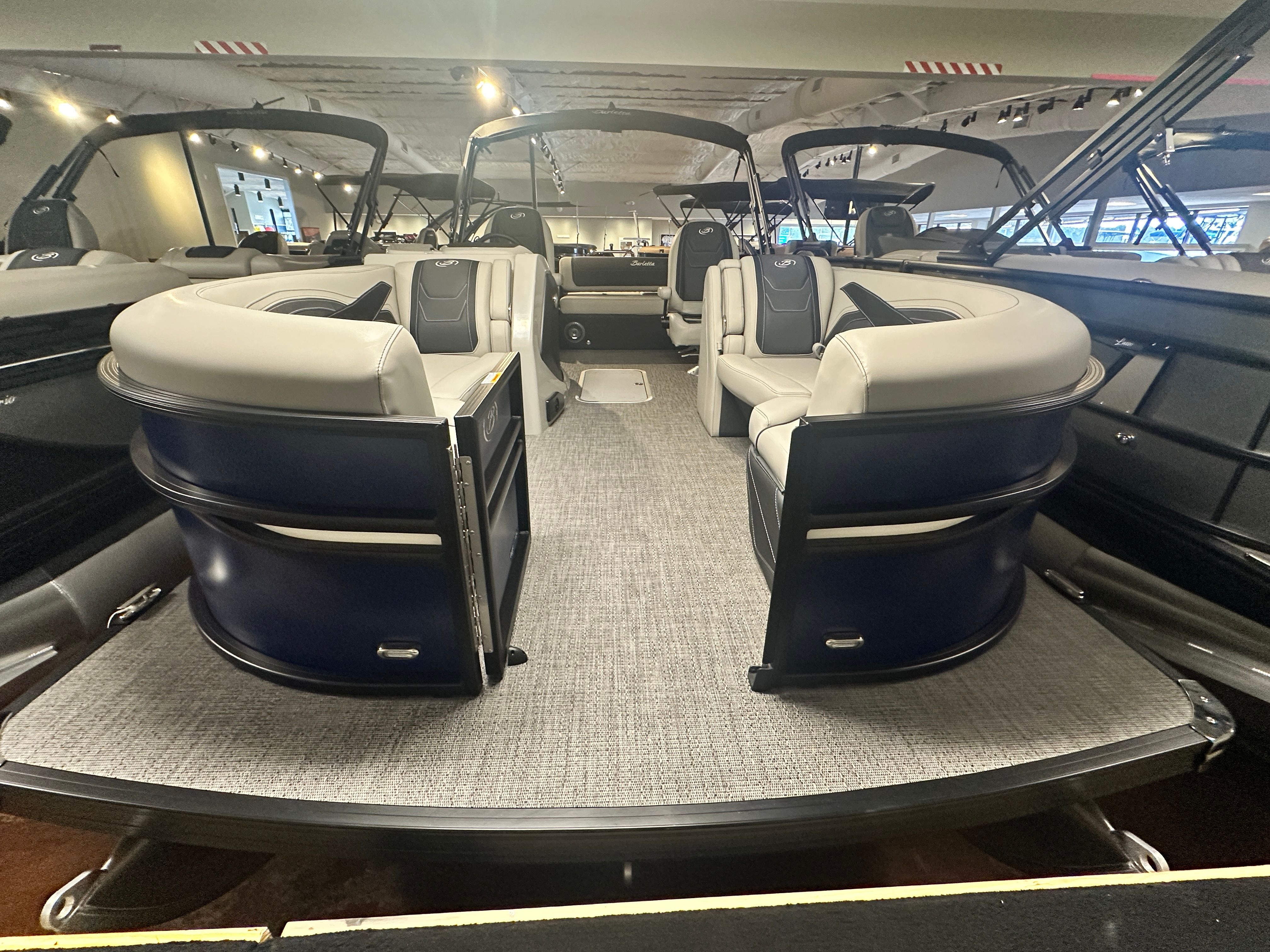 The 2026 Barletta Cabrio C22UC is a brand-new pontoon boat measuring just over 23 feet in length, making it an ideal size for both intimate family outings and lively gatherings with friends. Barletta is renowned for its commitment to quality, and the Cabrio C22UC is no exception. Every detail, from the Marquesan Gray with Onyx furniture to the Amore Gray flooring, has been thoughtfully selected to create a sophisticated and inviting atmosphere. This Barletta boat for sale is designed to deliver a premium boating experience, whether you are cruising along the shoreline or anchored at your favorite swimming spot.