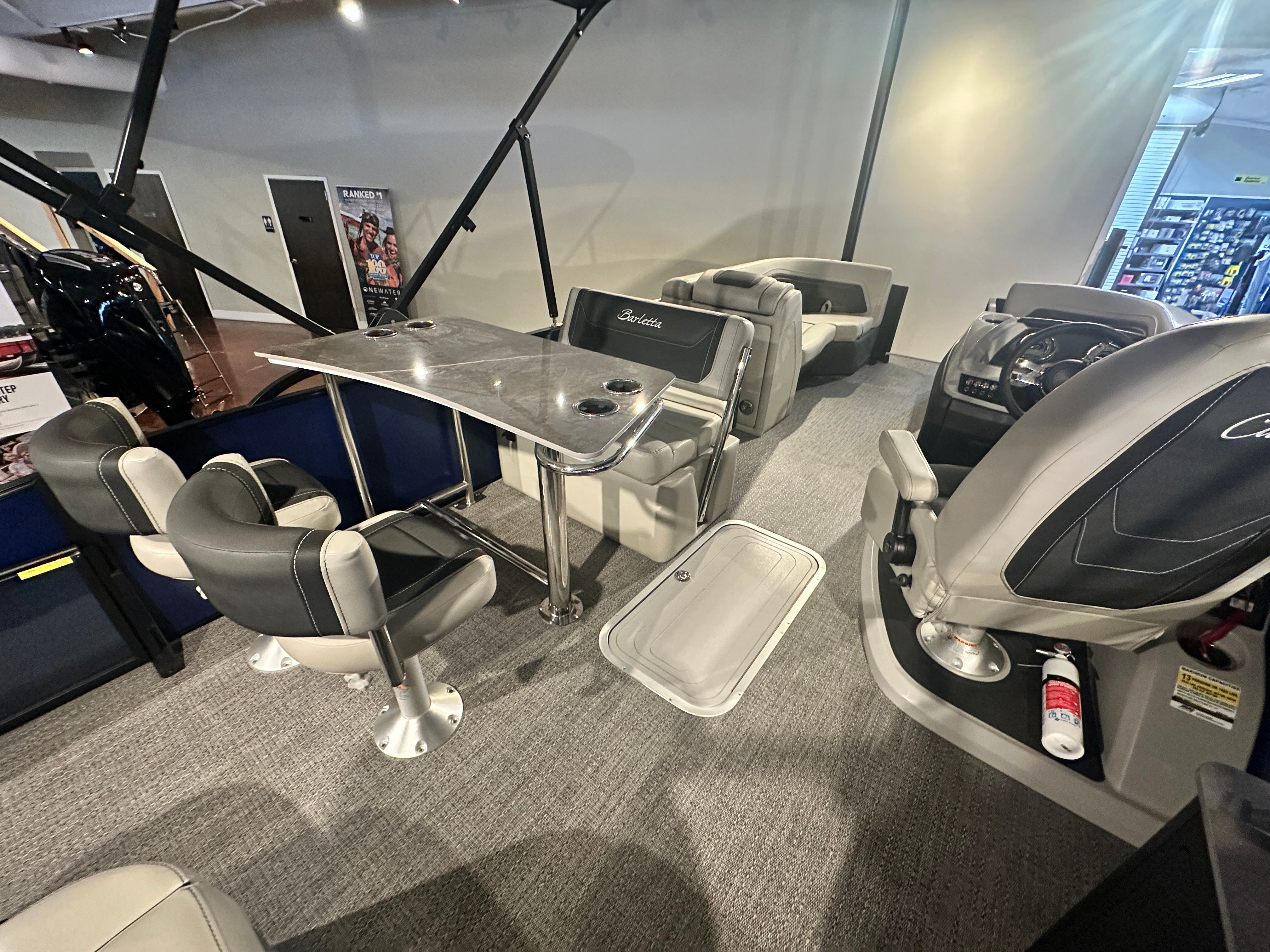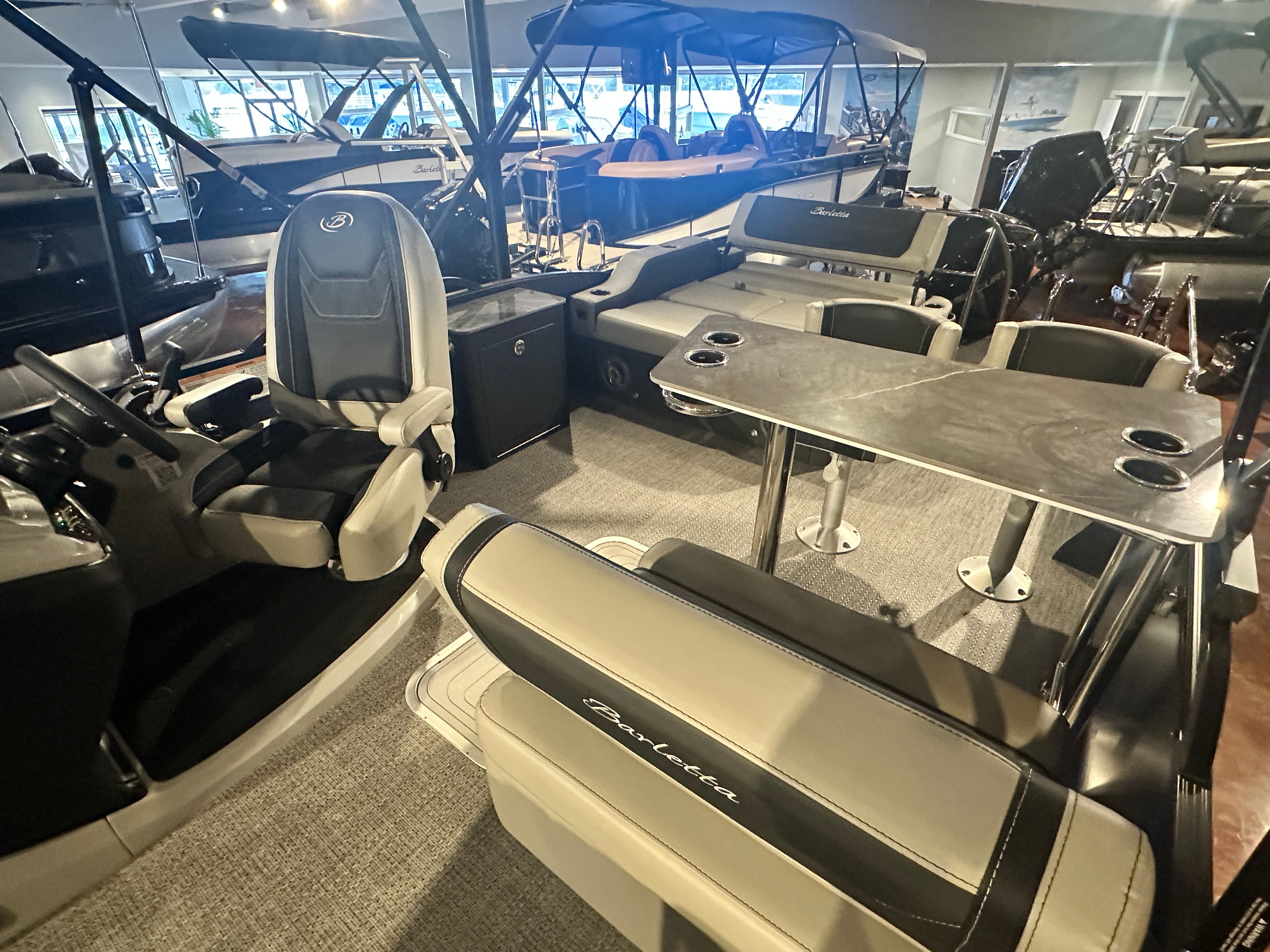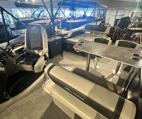 Practicality meets luxury in the Barletta Cabrio C24UE. The boat’s spacious layout and clever storage solutions make it easy to bring along everything you need for a day on the water. Docking is a breeze thanks to the responsive Mercury engine and power assist steering, while the triple toon package ensures smooth, stable handling in a variety of conditions. The durable flooring and furniture are designed to withstand the elements, so you can spend less time worrying about maintenance and more time enjoying your boat.Fuel efficiency is enhanced by the advanced Mercury engine and stainless steel prop, helping you go further on every tank. The midship storage is perfect for stowing life jackets, coolers, fishing gear, or water toys, keeping the deck clutter-free and ready for fun. Whether you’re planning a quick afternoon cruise or an all-day adventure, the Cabrio C24UE adapts to your needs with ease.