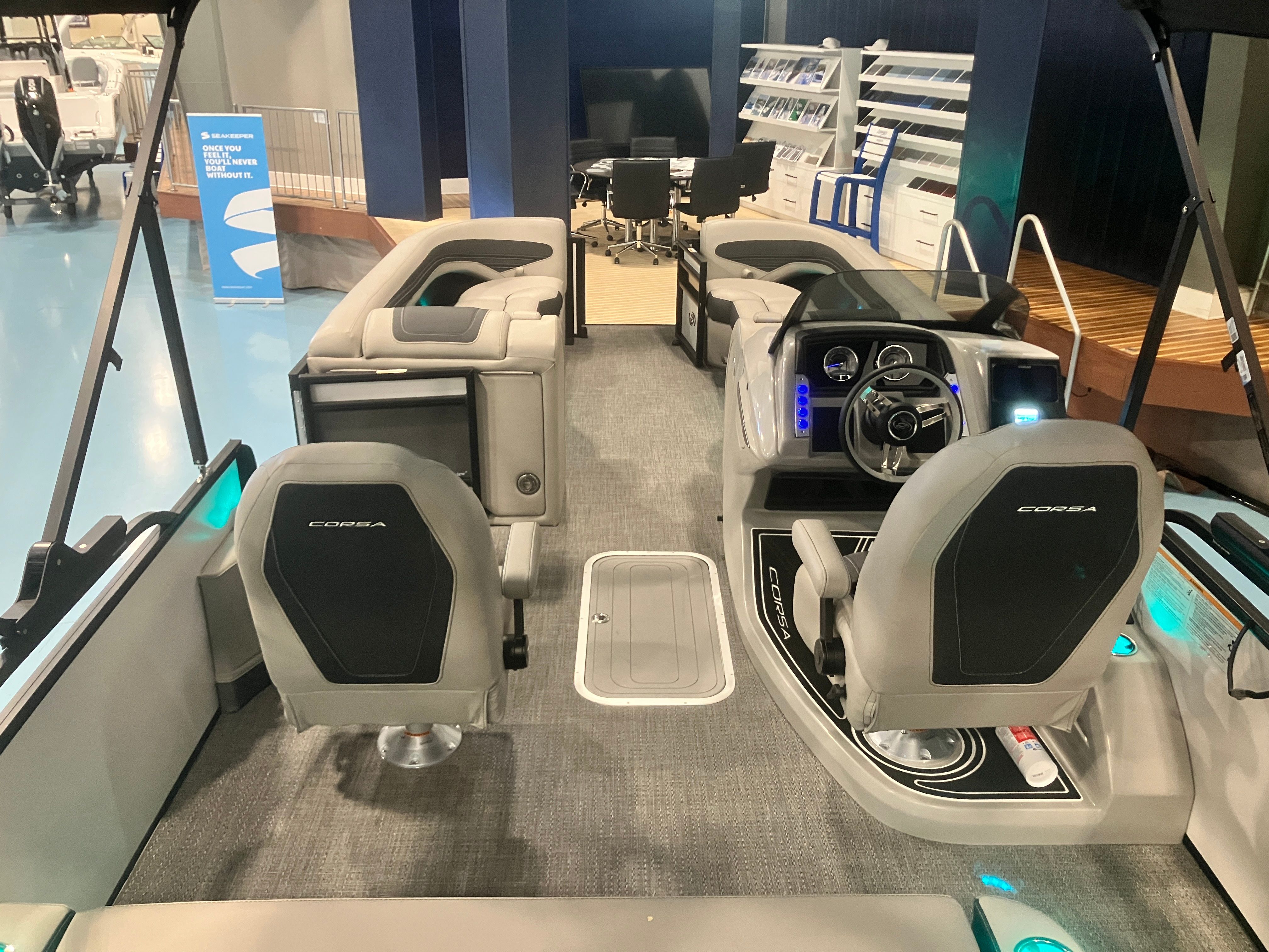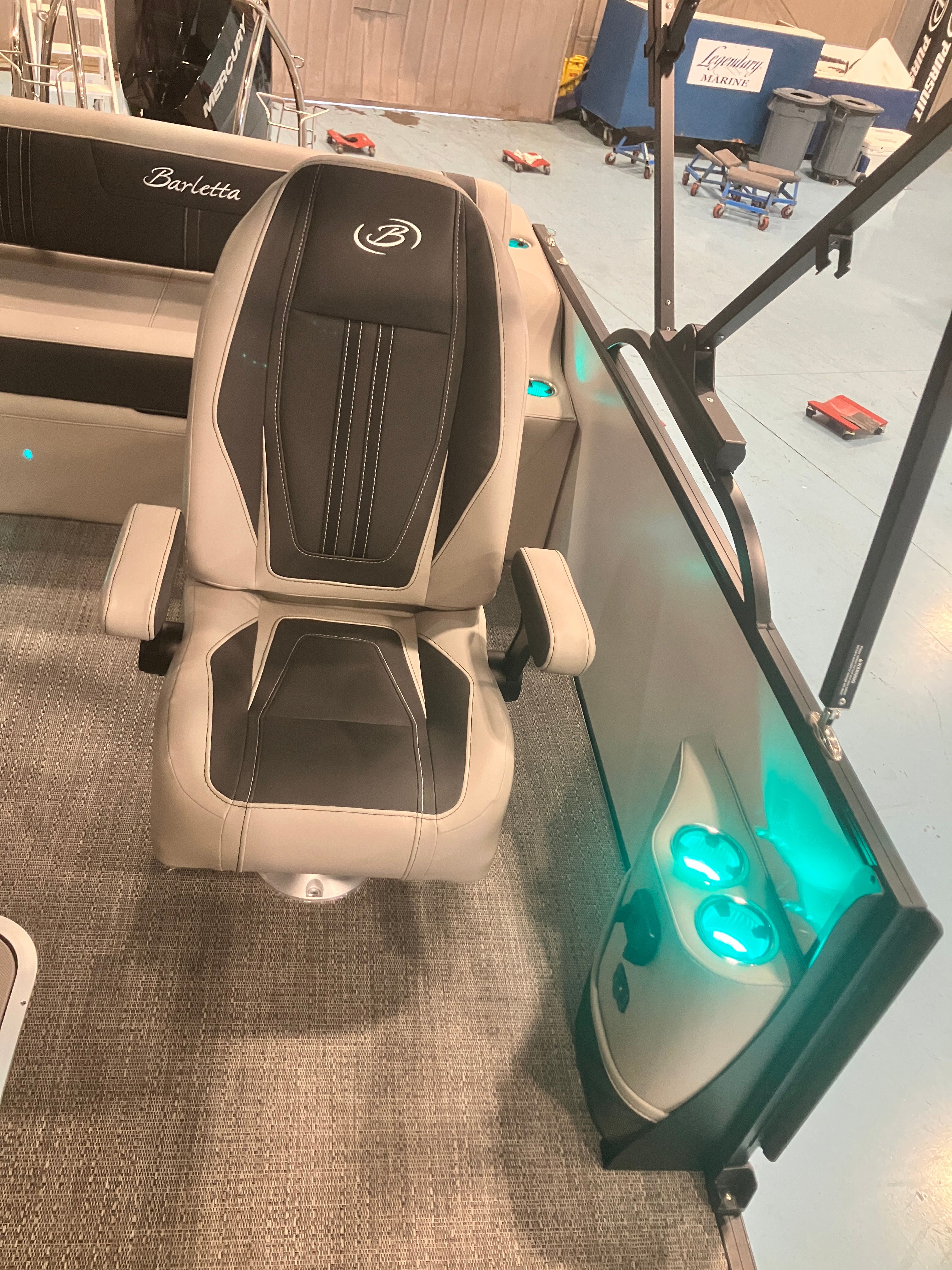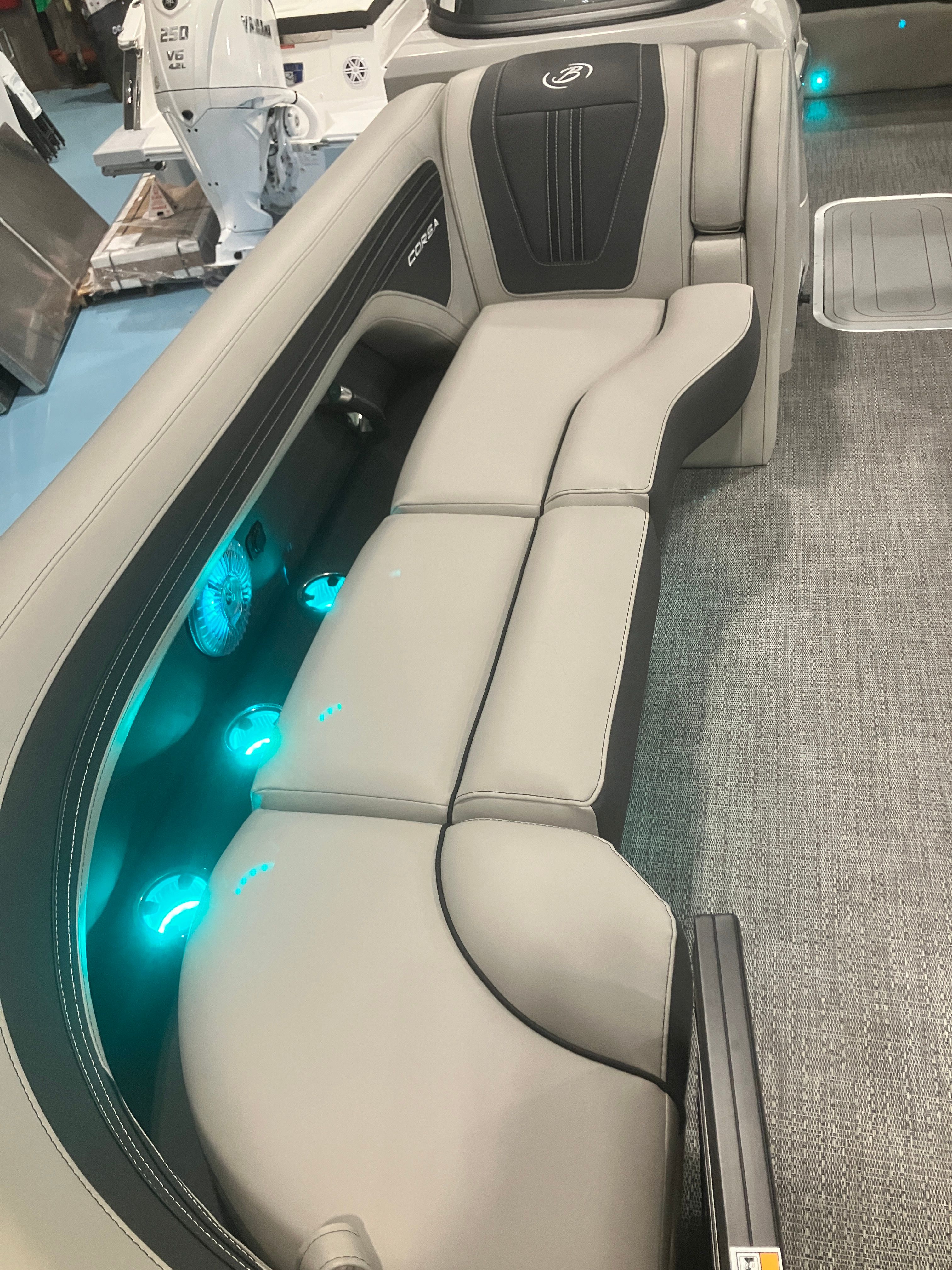 Beyond its luxurious features and impressive performance, the Barletta Corsa 25UC is designed with practicality in mind. The spacious layout provides ample room for storage, making it easy to bring along all your essentials for a day on the water. The pontoon’s length and design contribute to stability and ease of docking, allowing for stress-free arrivals and departures at any marina or dock. The efficient Mercury 400L Verado V10 engine is engineered for reliability and fuel efficiency, so you can spend more time enjoying the water and less time worrying about refueling.The durable flooring and high-quality upholstery are built to withstand the rigors of boating life, ensuring your investment remains beautiful and functional season after season. Every aspect of the Corsa 25UC is crafted to enhance your boating experience, from the moment you step aboard to the time you return to shore.