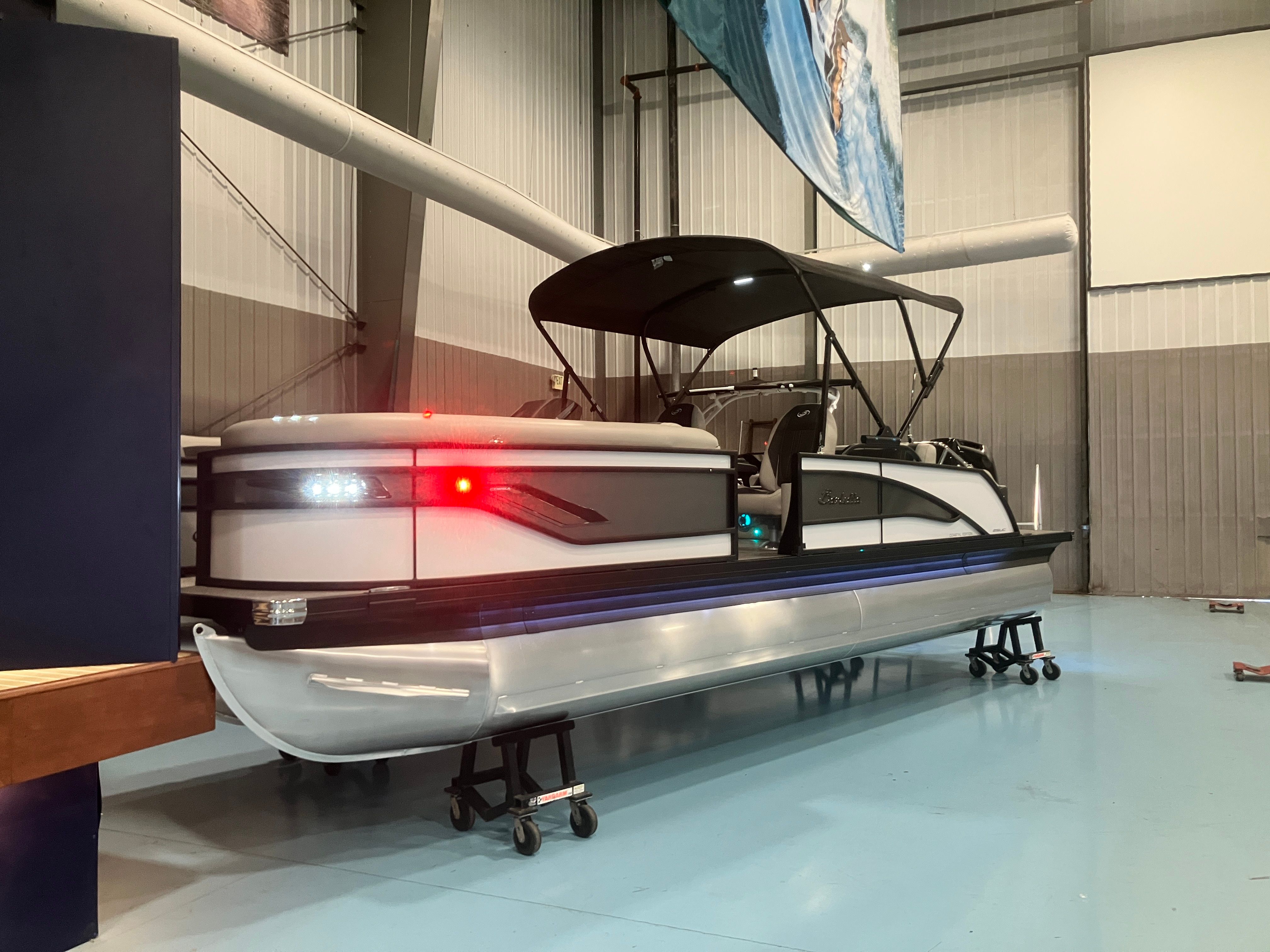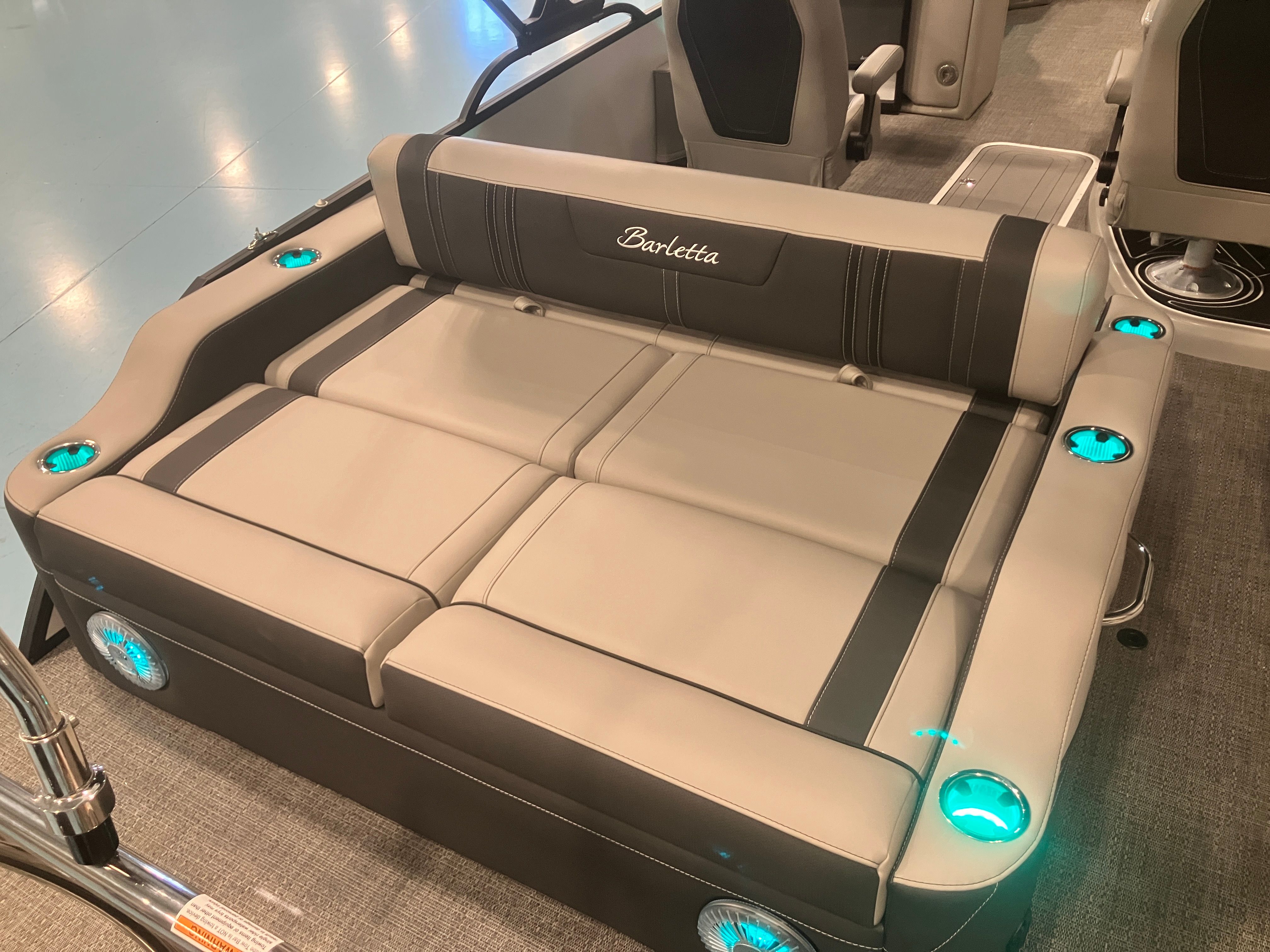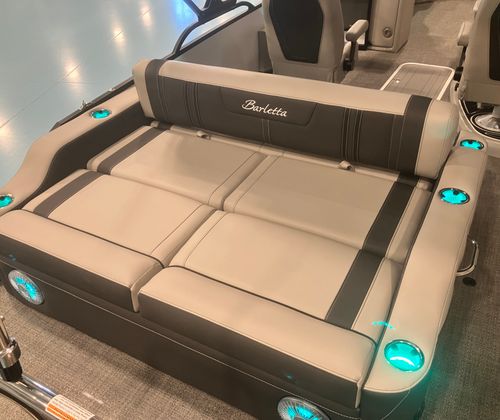 The 2026 Barletta Corsa 25UC is loaded with premium features that set it apart from other pontoon boats for sale. The striking Railskin Color in Winter White, accented by Gray Moonstone, creates a sophisticated and contemporary look, further enhanced by the Blackout Package Corsa. The Coastal Edition Corsa adds a touch of exclusivity, while the Soft Touch Marquesan Gray furniture with Carbon Accent provides plush seating and a refined atmosphere. The Amore Gray flooring is both stylish and durable, offering a comfortable surface underfoot for barefoot days on the water.This Barletta boat for sale also includes a stainless steel flag pole with an American flag, adding a patriotic flair and a sense of pride to your boating experience. Every detail, from the color choices to the high-quality materials, reflects Barletta’s commitment to craftsmanship and luxury.