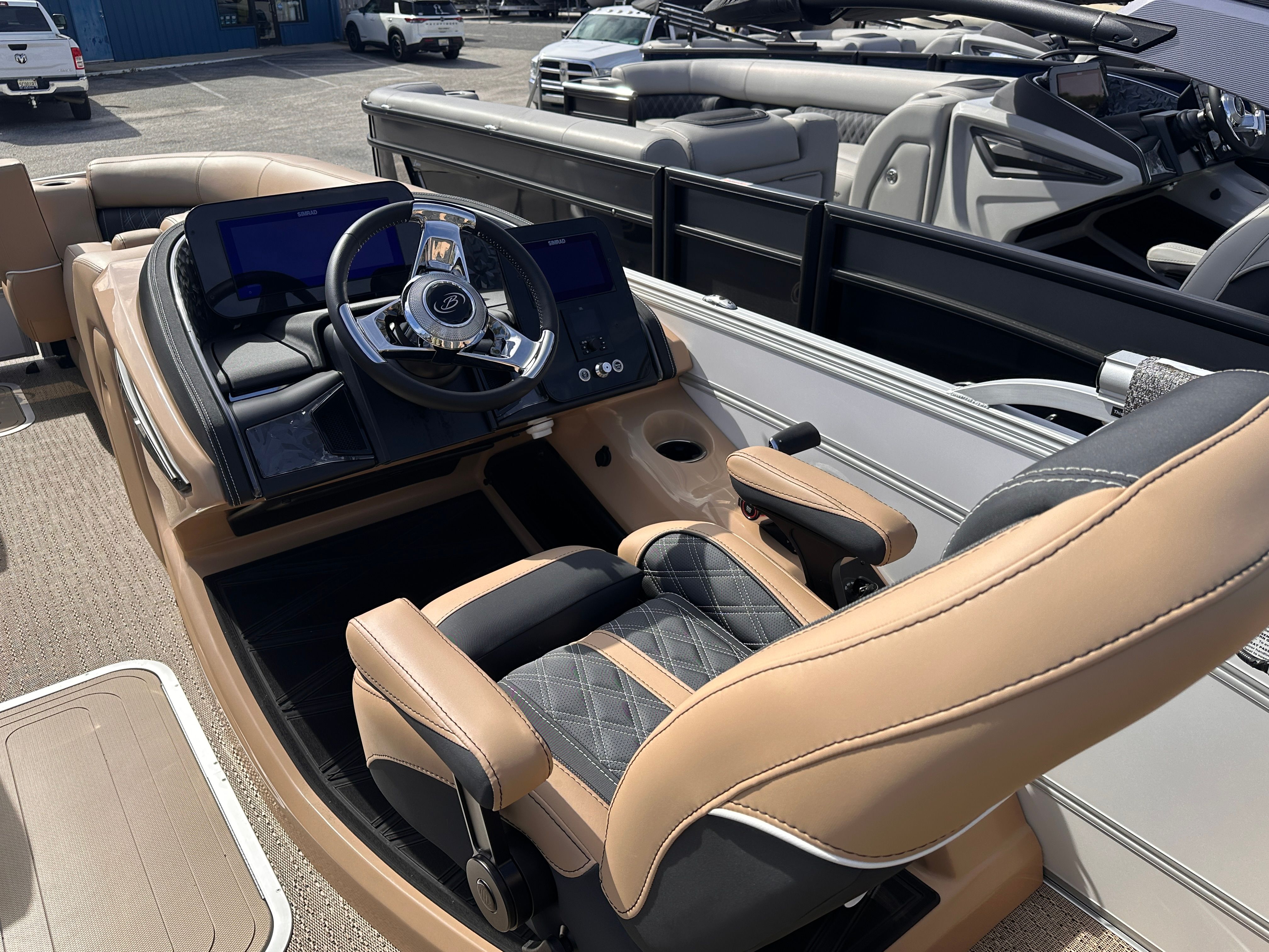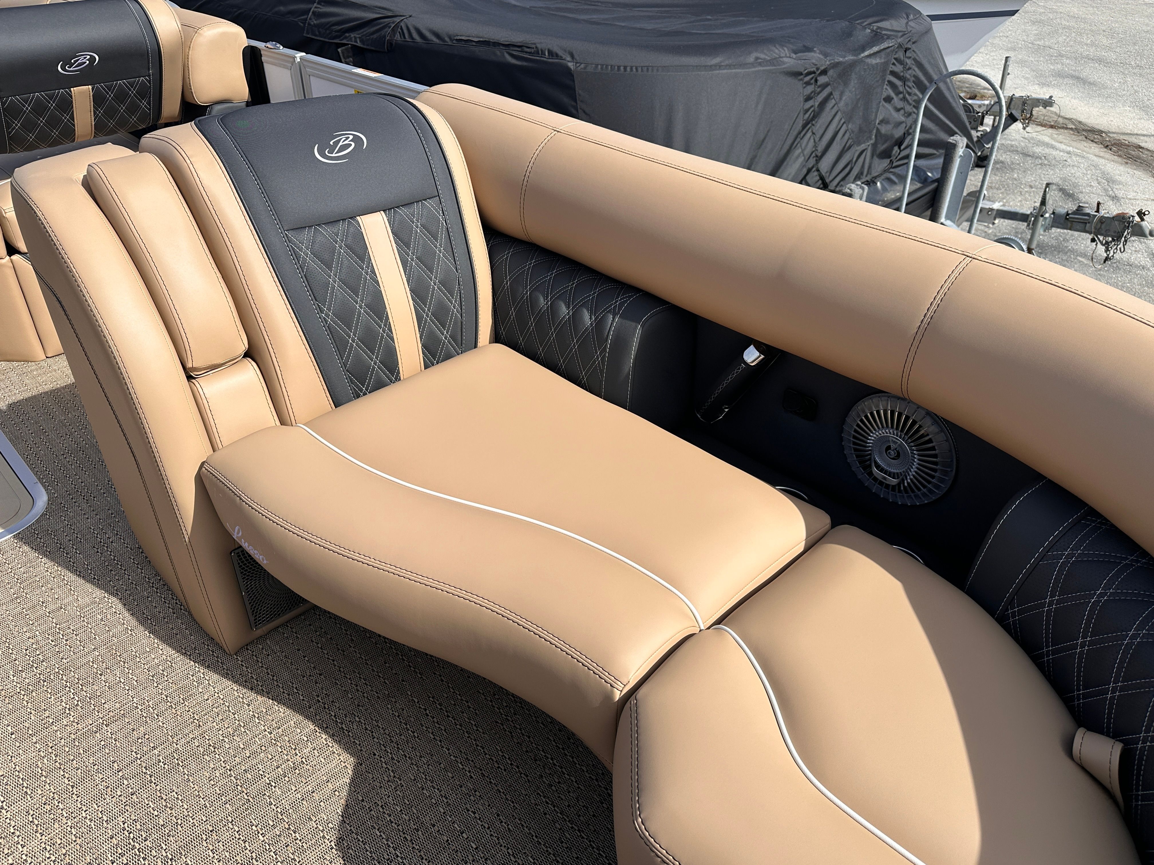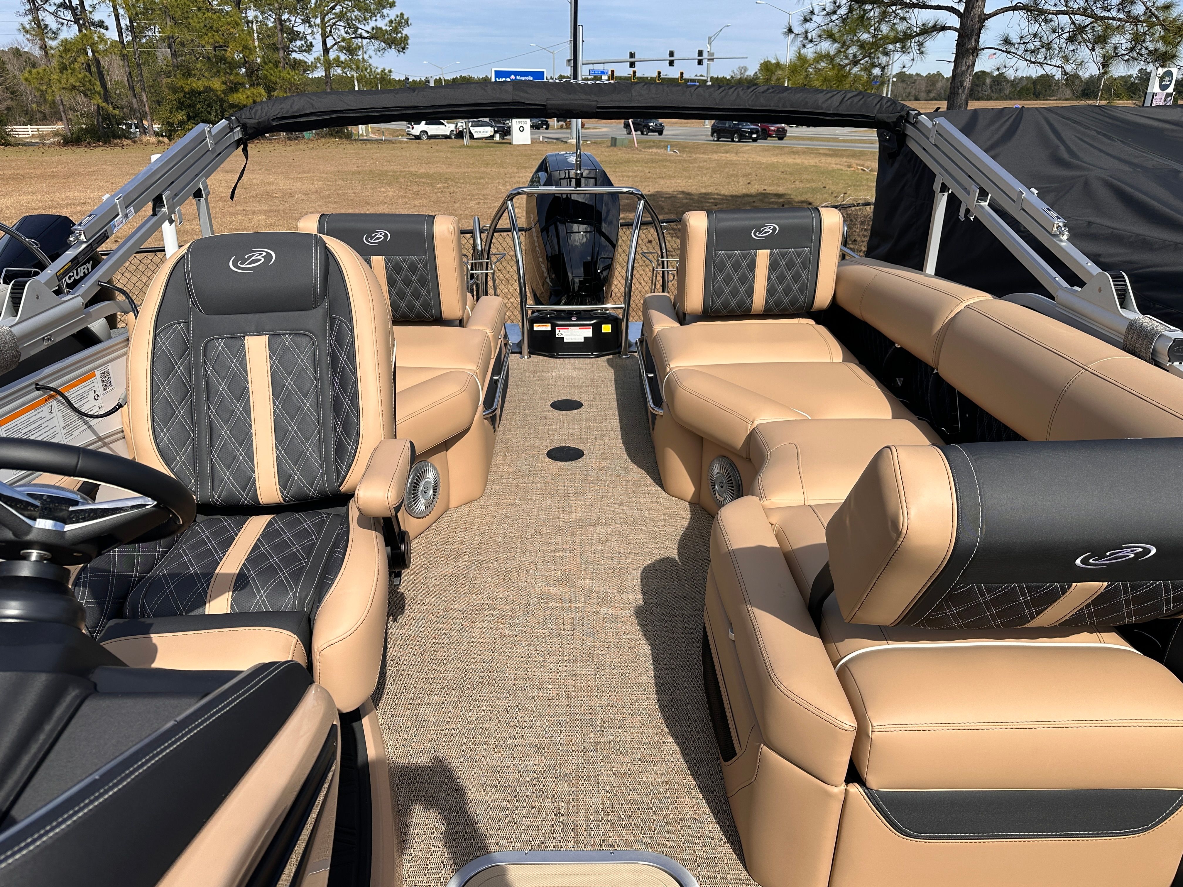 The Barletta Lusso L23M is packed with features that elevate your boating experience to new heights. The Coastal Edition Lusso package enhances both aesthetics and functionality, ensuring you enjoy every moment on board. The exterior boasts a sophisticated Winter White sweep and accent color, creating a striking visual presence on the water. Step inside to discover Carmella Tan furniture with Onyx accents, perfectly complemented by Amore Tan flooring for a warm and inviting atmosphere.For those who appreciate ambiance, the Lusso L23M is equipped with white underdeck and underwater exterior lighting, adding a touch of elegance to evening cruises and making nighttime adventures both safe and visually stunning. Every detail, from the premium upholstery to the thoughtfully designed layout, reflects Barletta’s commitment to luxury and comfort.