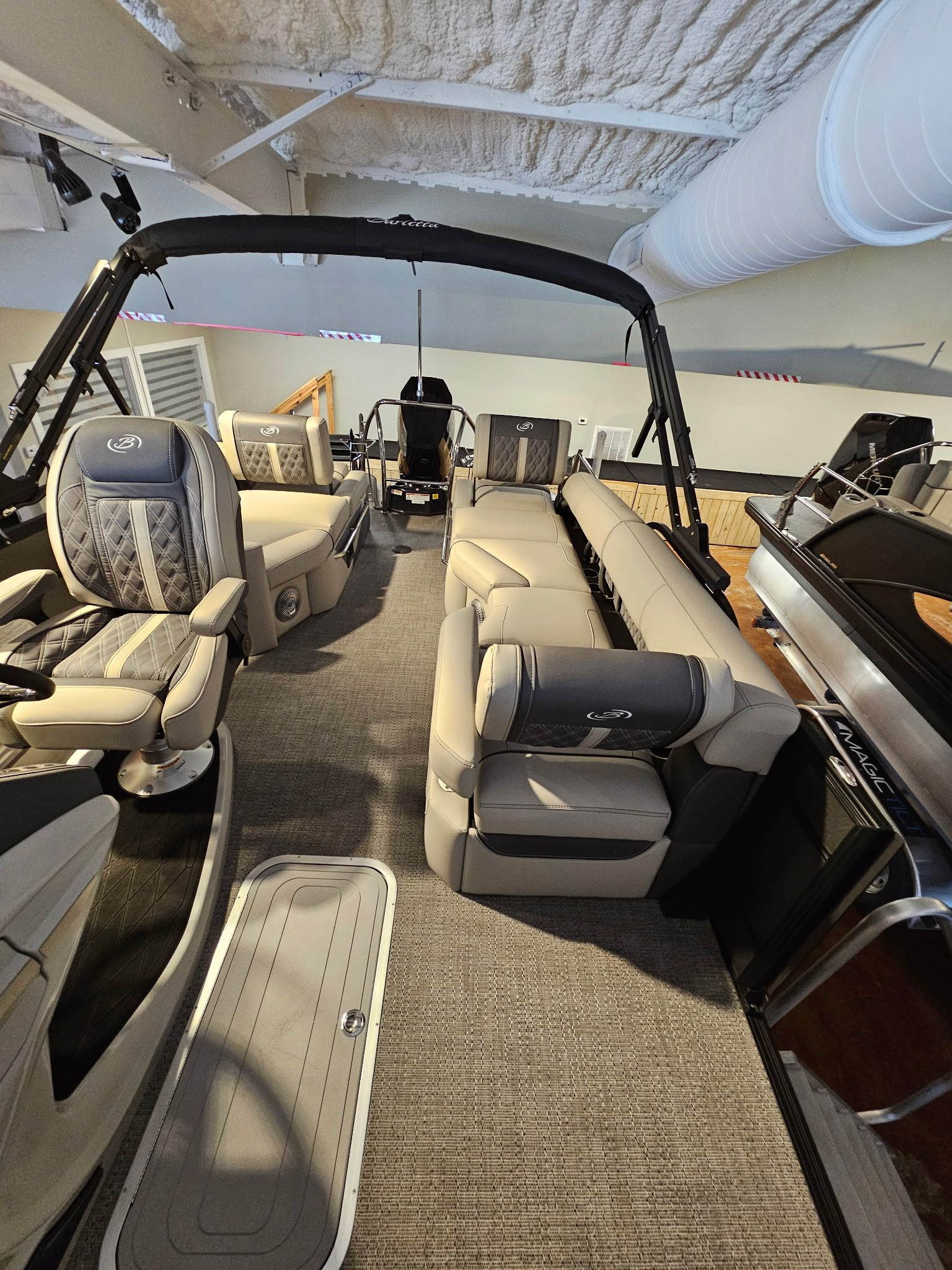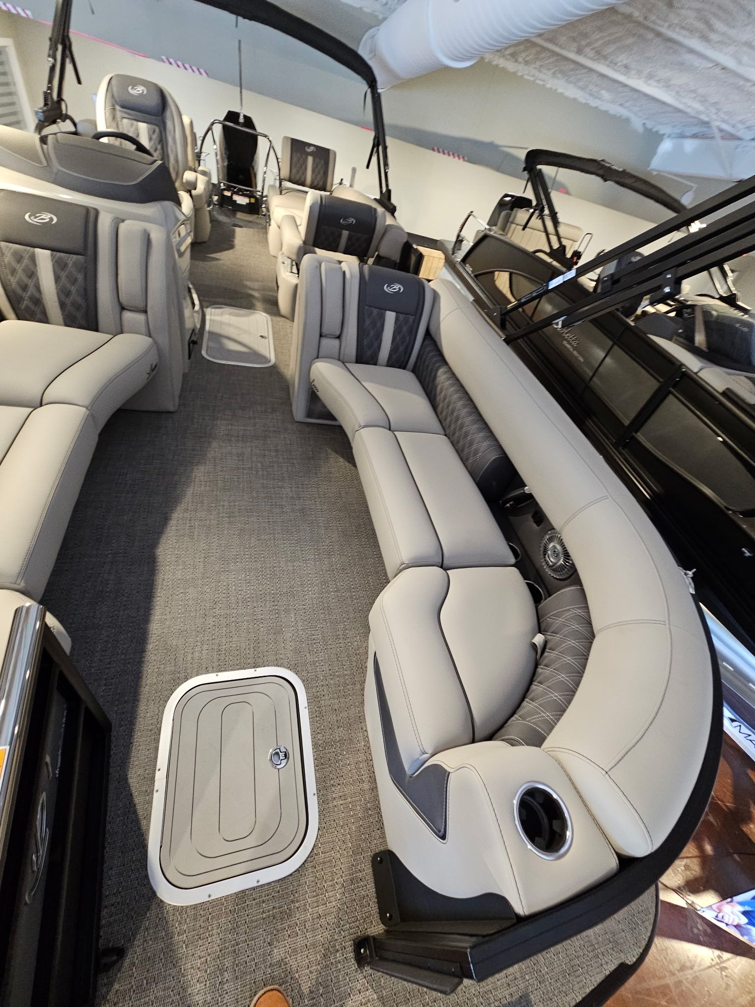 The 2025 Barletta Lusso L25M shines in a variety of scenarios, making it an ideal choice for families, entertainers, and boating enthusiasts alike. Picture yourself hosting a lively gathering with friends, the spacious deck providing ample room for laughter and conversation as you cruise along the shoreline. For families, the comfortable seating and generous space make it easy to enjoy picnics, swimming, and water sports together.This pontoon is also perfect for those seeking a peaceful escape. Imagine anchoring in a quiet cove, the double bimini providing cool shade as you relax with a good book or take in the sunset. The Lusso L25M’s blend of power and luxury makes it equally suited for adventurous outings or tranquil retreats, adapting effortlessly to your boating lifestyle.