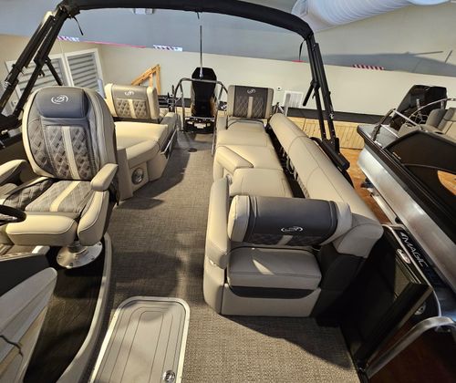 Owning the Barletta Lusso L25M means embracing a lifestyle of fun, relaxation, and connection. The spacious deck layout encourages social gatherings, making it easy to host family celebrations, sunset cruises, or impromptu get-togethers with friends. The plush seating and thoughtfully designed furniture invite you to unwind, while the advanced engine technology ensures every outing is as smooth as it is exciting.This pontoon boat is perfect for those who value both performance and comfort. The powerful Mercury 400L V10 Verado engine provides the speed and agility needed for water sports or quick trips across the lake, while the luxurious amenities create a resort-like atmosphere on board. With its eye-catching design and premium finishes, the Lusso L25M is sure to be the centerpiece of your boating adventures.