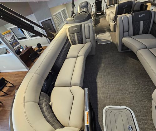 At the heart of the Barletta Lusso L25M is the powerful Mercury 400L V10 Verado engine. With a robust 400 horsepower, this pontoon is engineered for exhilarating performance and smooth cruising. The Mercury Digital Pre-Rig for V10 ensures seamless integration and optimal control, while the Drop Ship Engine with V10 Prop delivers impressive acceleration and top-end speed. Whether you are gliding across calm waters or powering through choppy conditions, the Lusso L25M offers a responsive and thrilling ride every time you take the helm.