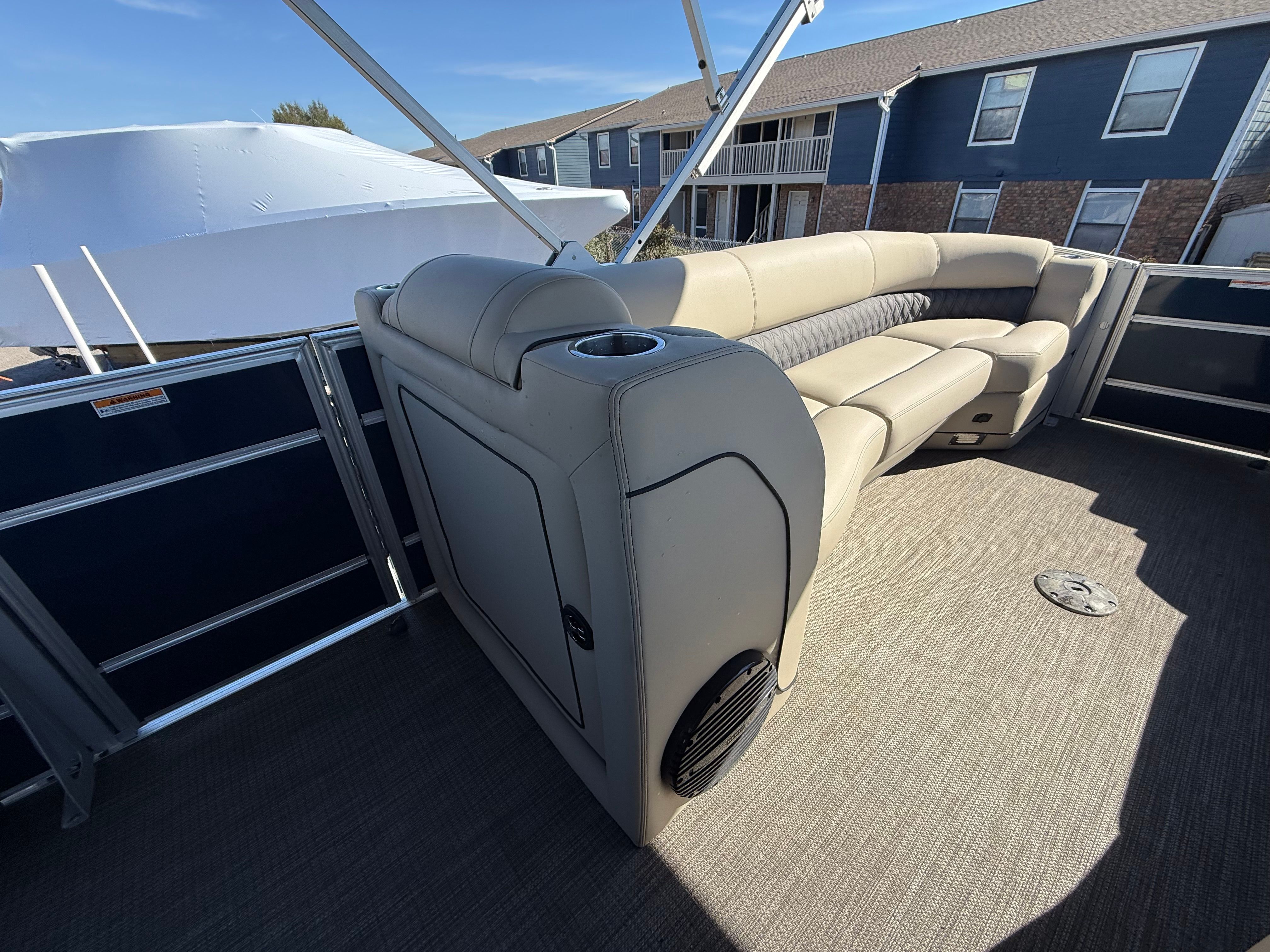 Powering the Barletta Lusso L25QC is a single engine with an impressive 250 horsepower and just 241 engine hours, delivering robust performance and reliable efficiency. This powerful setup ensures smooth acceleration, responsive handling, and the ability to cruise effortlessly across lakes, rivers, and coastal waters. Whether you’re towing water toys, heading out for a sunset cruise, or simply enjoying a leisurely ride, the Lusso L25QC’s engine provides the perfect balance of strength and fuel economy. With this pontoon boat for sale, you can expect a thrilling yet comfortable ride every time you hit the water.