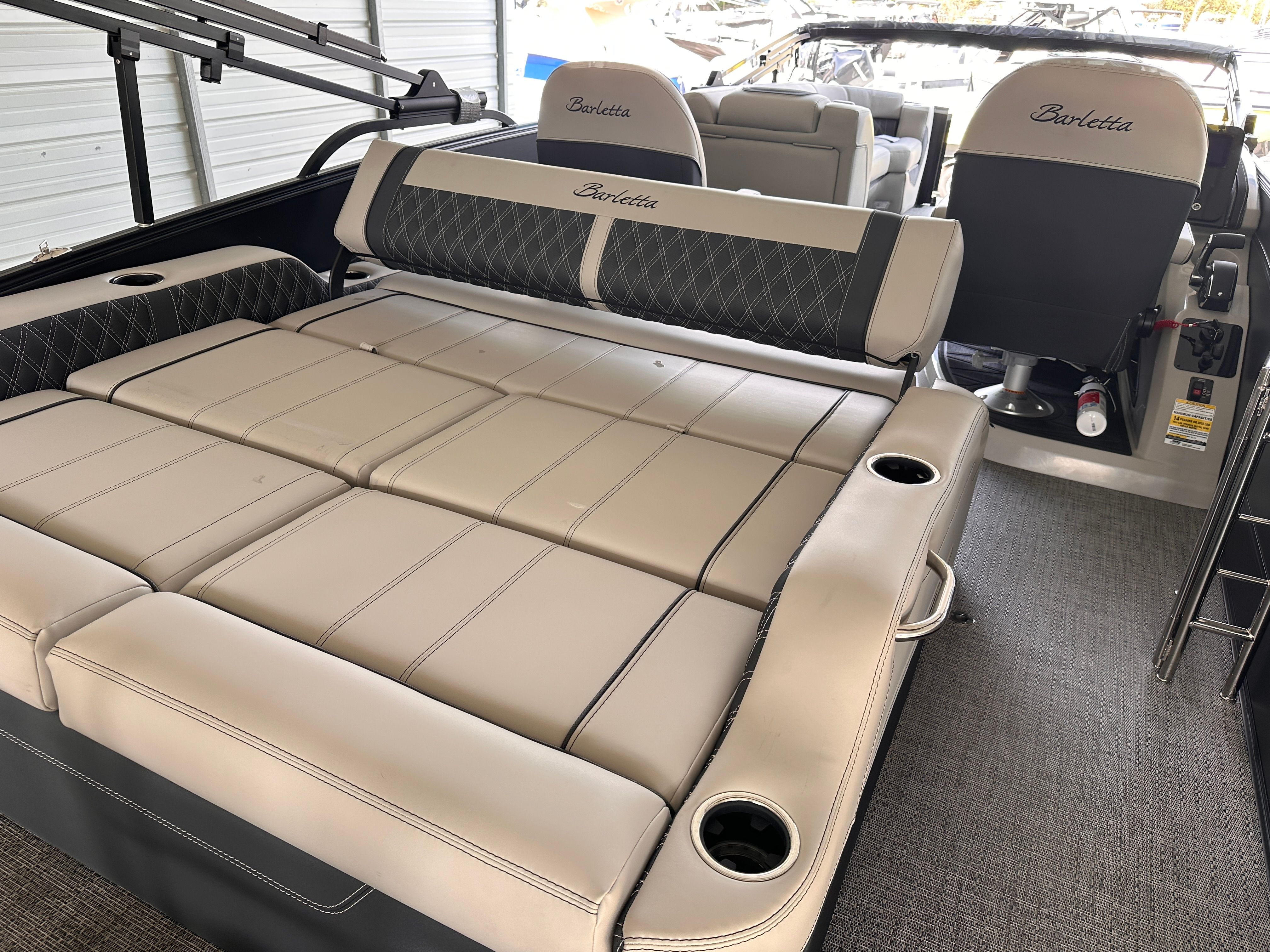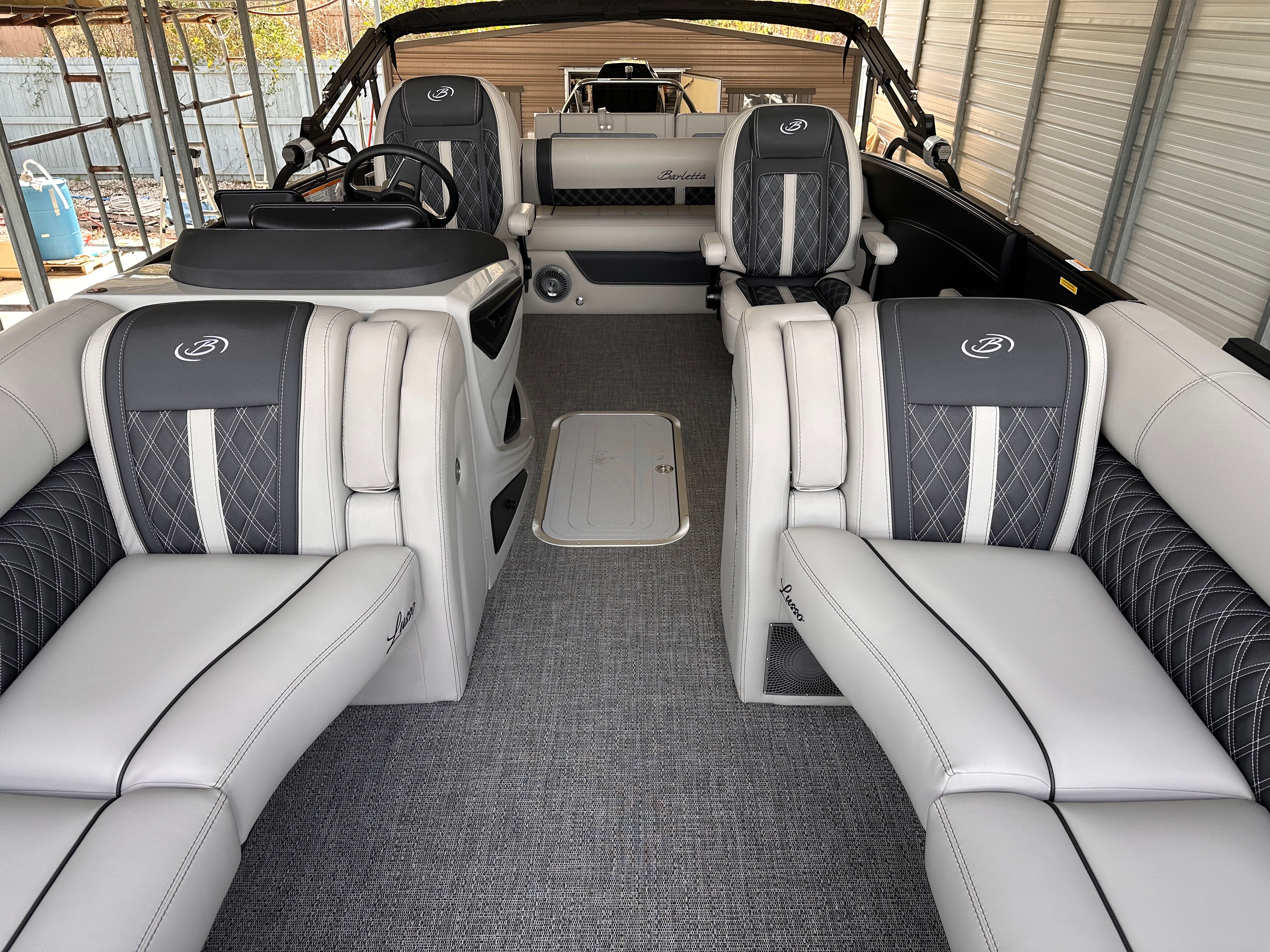 Owning the Barletta Lusso L25UC means embracing a lifestyle of fun, relaxation, and social connection. The spacious deck layout provides plenty of room for family and friends to spread out, enjoy meals, play games, or simply soak up the sun. The plush seating and premium materials ensure everyone stays comfortable, whether you’re hosting a lively party or enjoying a quiet sunset cruise.The advanced Mercury engine and digital rigging offer peace of mind and effortless operation, so you can focus on making memories rather than managing complicated controls. The double bimini system adds flexibility, allowing you to create the perfect environment for any occasion. With its stylish design and high-end finishes, the Lusso L25UC is sure to impress guests and make every outing feel special.