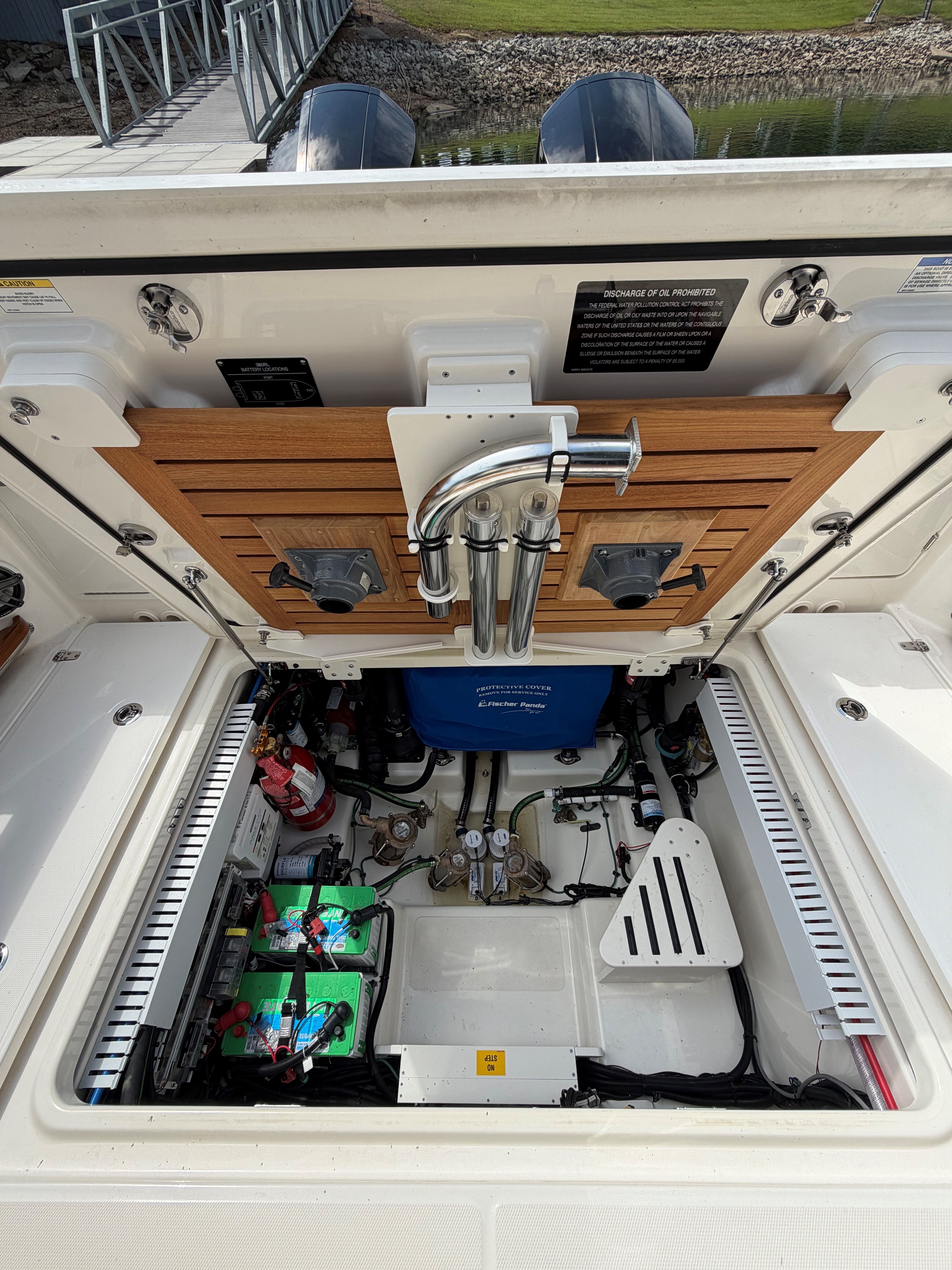 Experience unmatched performance and comfort aboard this freshwater 2024 Boston Whaler 380 Realm, perfectly equipped for both adventure and relaxation. Powered by twin Mercury V12 600s with only 60 hours and supported by a Panda Fischer diesel generator with 70 hours, this Realm combines innovation, reliability, and premium craftsmanship. A SeaKeeper system ensures unmatched stability at anchor, while high-end options throughout deliver the luxury and versatility Boston Whaler is celebrated for.