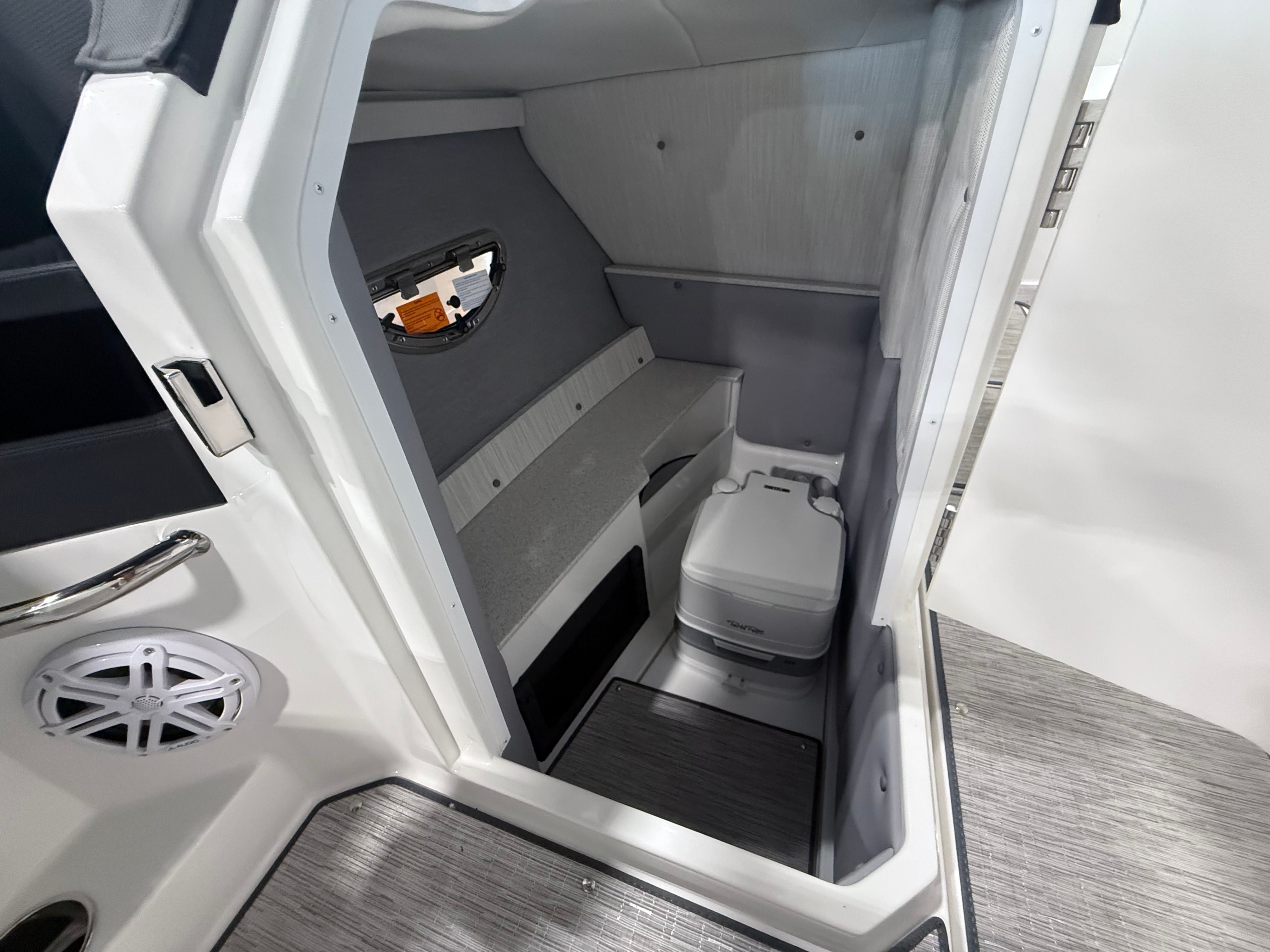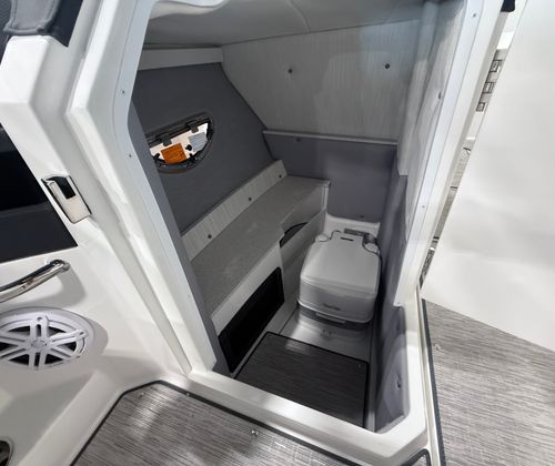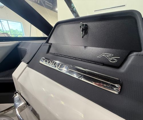 The 2025 Cobalt R6 OB is designed with practicality in mind, making ownership as enjoyable as your time on the water. The folding arch with rotating shade allows for easy storage and transport, while also providing customizable sun protection during your outings. The bow and cockpit tonneau covers help protect your investment from the elements, ensuring your boat stays in top condition.The stainless steel docking lights make evening arrivals and departures safer and more convenient, and the port boarding ladder simplifies water access for swimmers and water sports enthusiasts. The battery maintainer/charger keeps your electrical systems in peak condition, reducing downtime and maintenance concerns. The Seagrass Silver Ash floor covering is not only stylish but also easy to clean, making post-adventure cleanup a breeze.