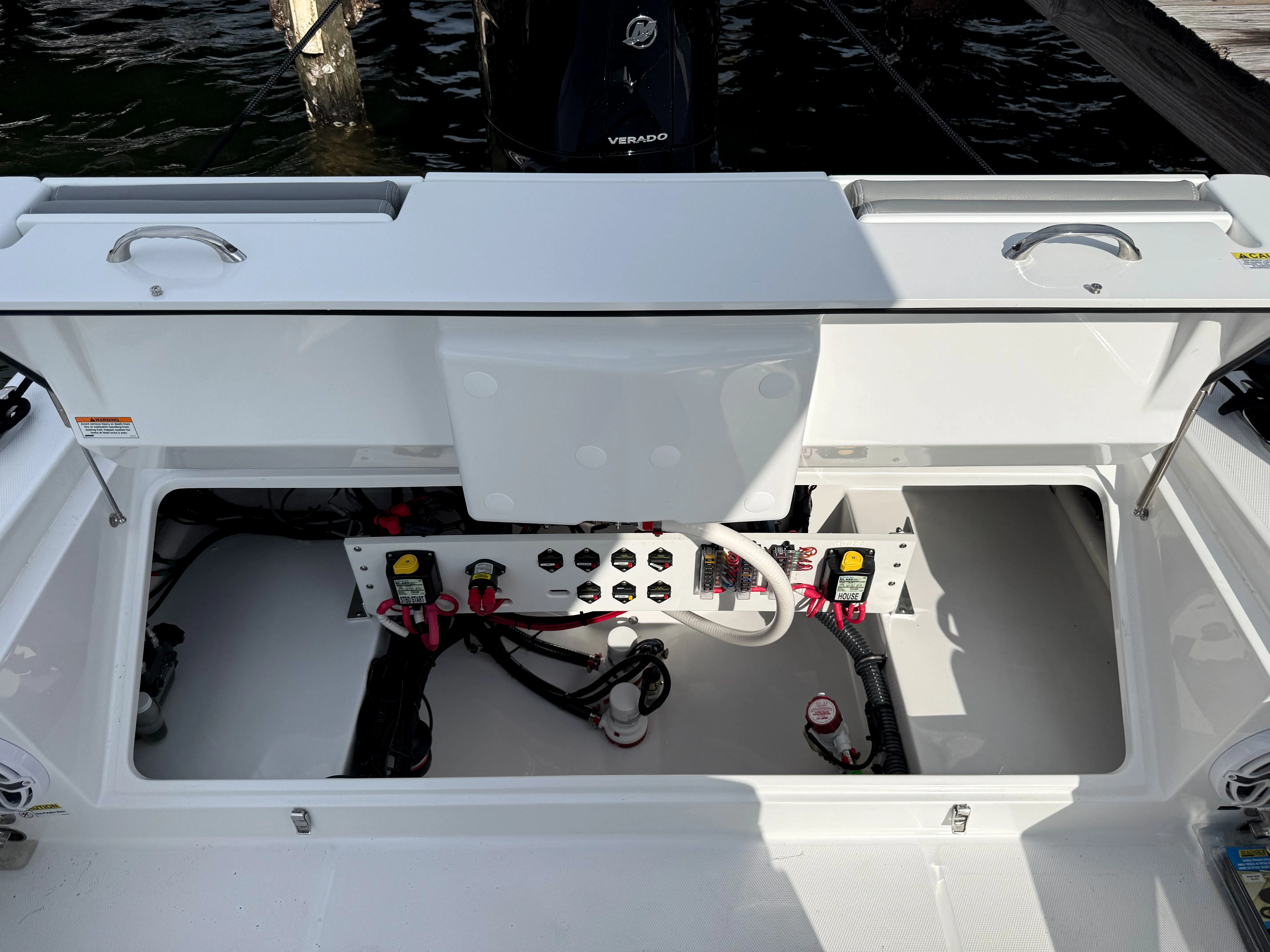 The Everglades 253 CC is designed with practicality in mind, offering features that make ownership easy and enjoyable. The ample storage space ensures that all your gear, supplies, and personal items are neatly stowed, keeping the deck clutter-free and organized. The boat’s length and Center Console design make docking straightforward, whether you’re at a busy marina or a secluded cove.Fuel efficiency is enhanced by the jack plate and Mercury engine configuration, allowing you to maximize your time on the water without frequent refueling stops. The durable hull and premium upholstery are built to withstand the rigors of marine environments, ensuring longevity and low maintenance. The windlass system adds convenience for anchoring, while the electronics package streamlines navigation and communication.