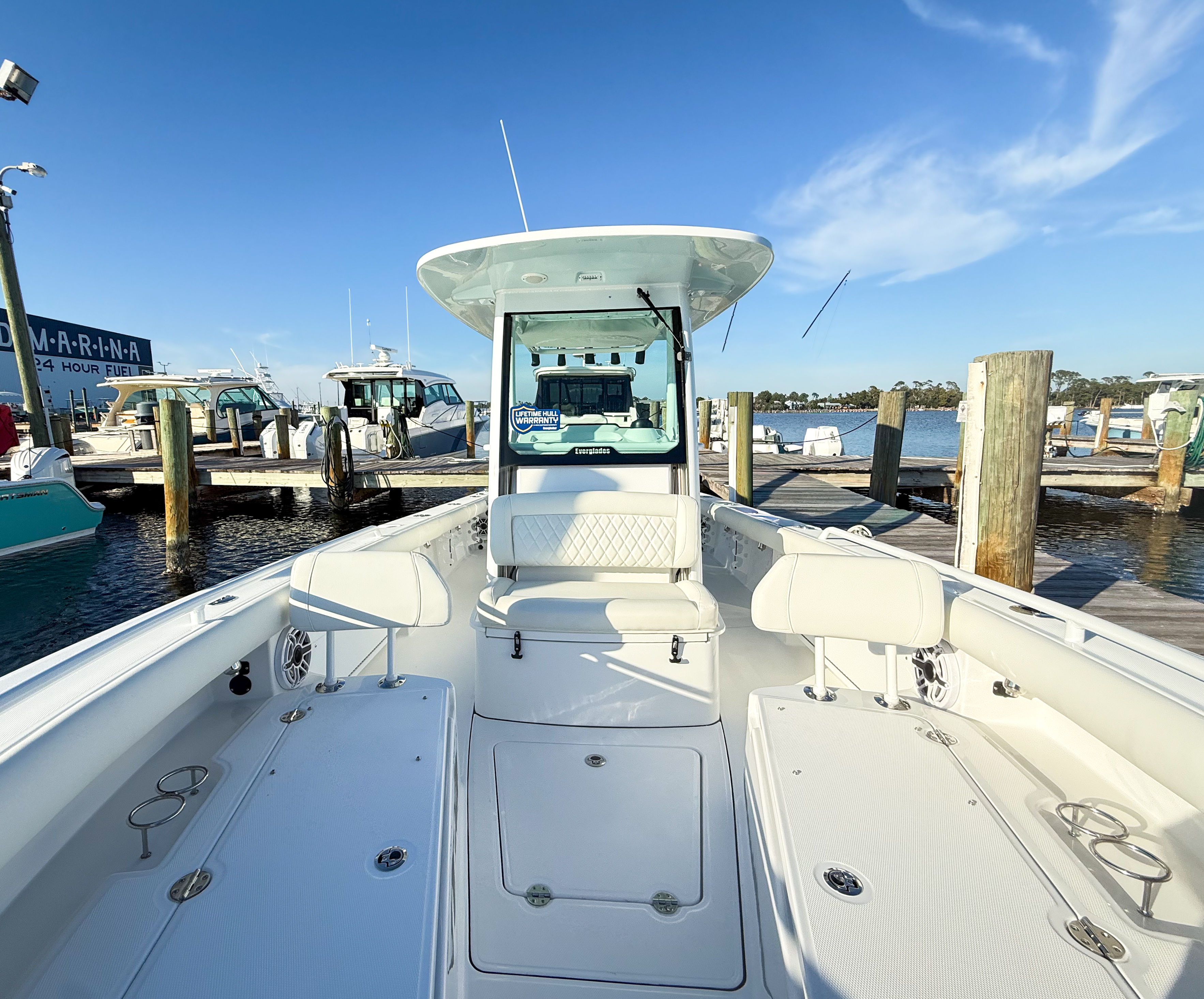 Owning the Everglades 273 CC means embracing a lifestyle of fun, relaxation, and adventure. The spacious Center Console layout provides ample room for guests to move about comfortably, making it perfect for social gatherings, family trips, or entertaining friends. The ergonomic helm seat ensures you stay comfortable during extended journeys, while the advanced electronics and autopilot system reduce fatigue and enhance your overall boating experience. The premium audio system lets you create the perfect soundtrack for your day on the water, and the underwater lights add a magical touch to evening cruises or dockside celebrations.