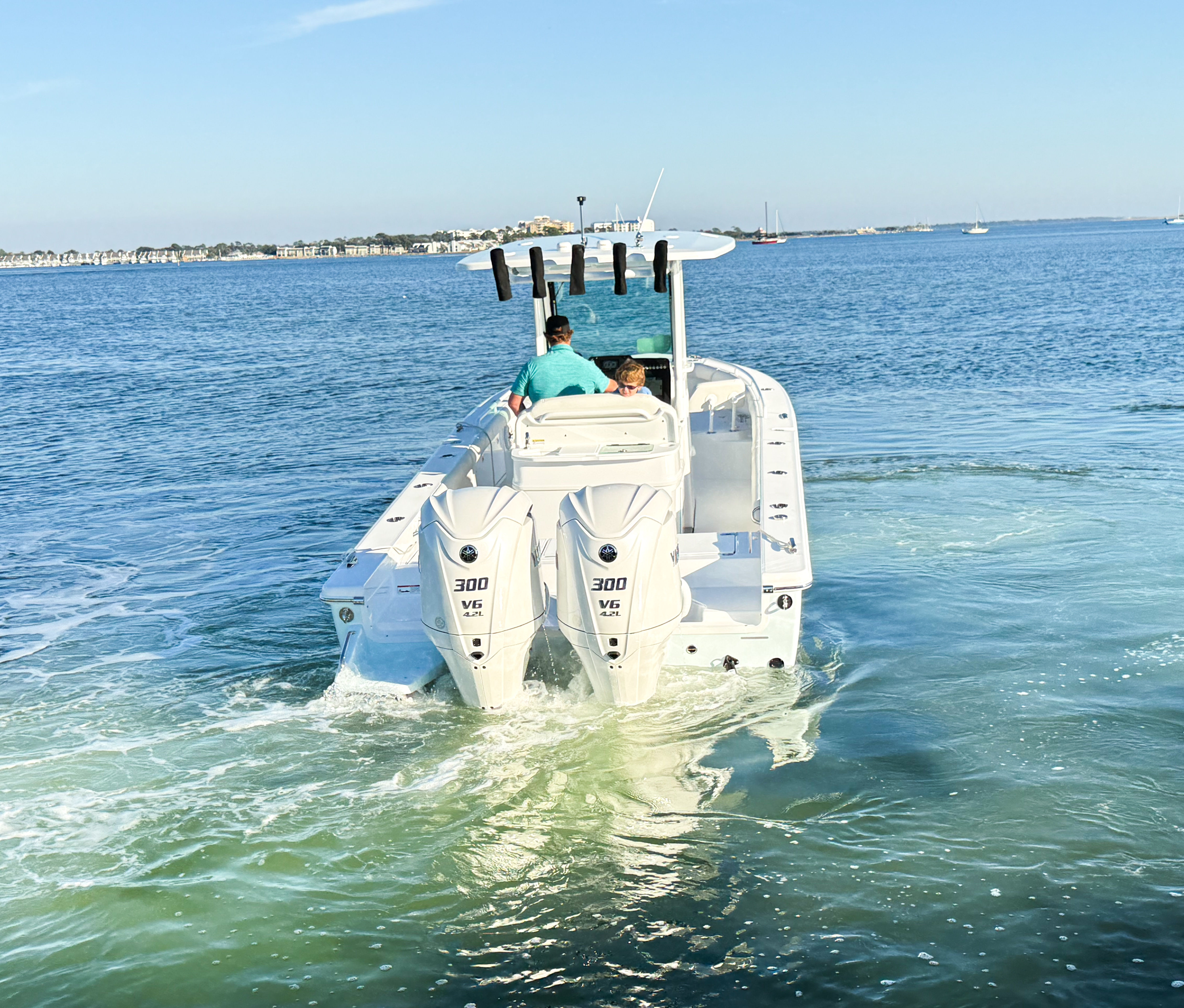 Powering the Everglades 273 CC are twin Yamaha F300 engines, finished in elegant white, delivering a combined 600 horsepower. This robust setup provides exhilarating acceleration, smooth cruising, and impressive top speeds, making it ideal for both offshore adventures and leisurely coastal explorations. The advanced Auto Pilot & Joystick system for Yamaha EX at the main station ensures precise handling and effortless maneuverability, even in challenging conditions. Whether you’re navigating tight marinas or heading out to deeper waters, the Everglades 273 CC offers responsive control and confidence-inspiring performance.