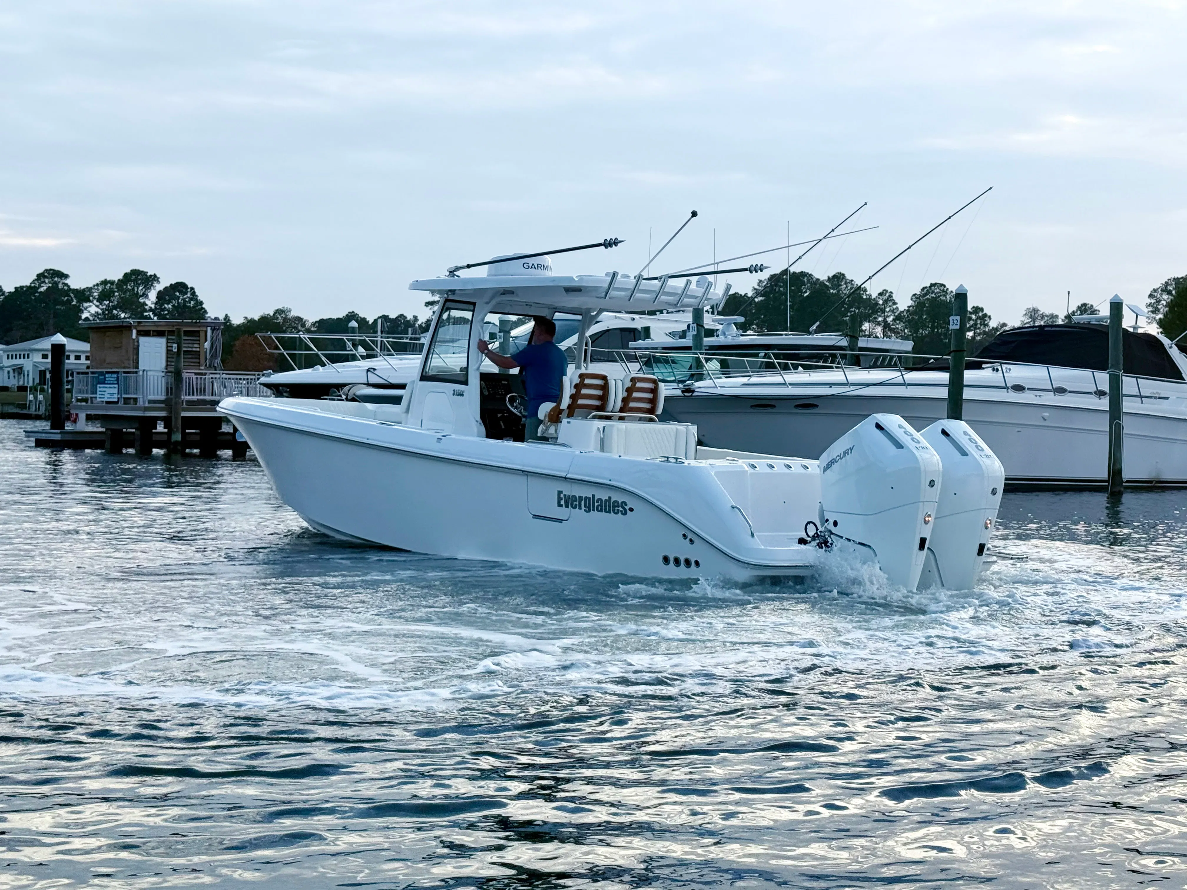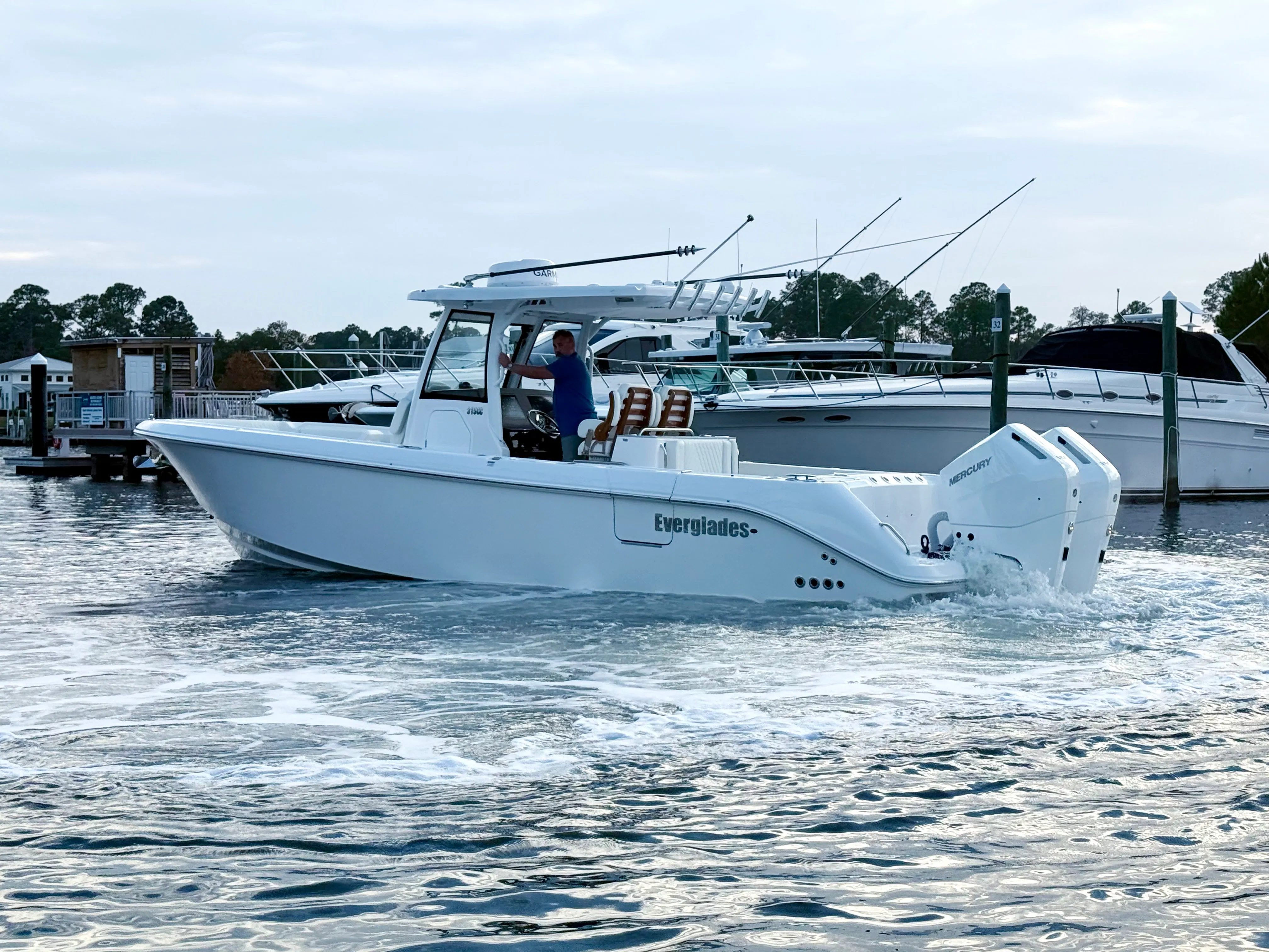 The 2026 Everglades 315 CC is a top-tier center console boat for sale, offering unmatched performance, style, and versatility. With twin Mercury 400 V10 engines, advanced autopilot and joystick controls, a full suite of canvas covers, and a comprehensive fishing package, this Everglades boat for sale is built to impress. Its spacious layout, elegant design, and practical features make it the ultimate choice for anyone seeking adventure, relaxation, and unforgettable moments on the water.Don’t miss your chance to own the Everglades 315 CC and elevate your boating lifestyle. Contact the dealer today to learn more about this exceptional center console boat and discover how it can transform your time on the water.