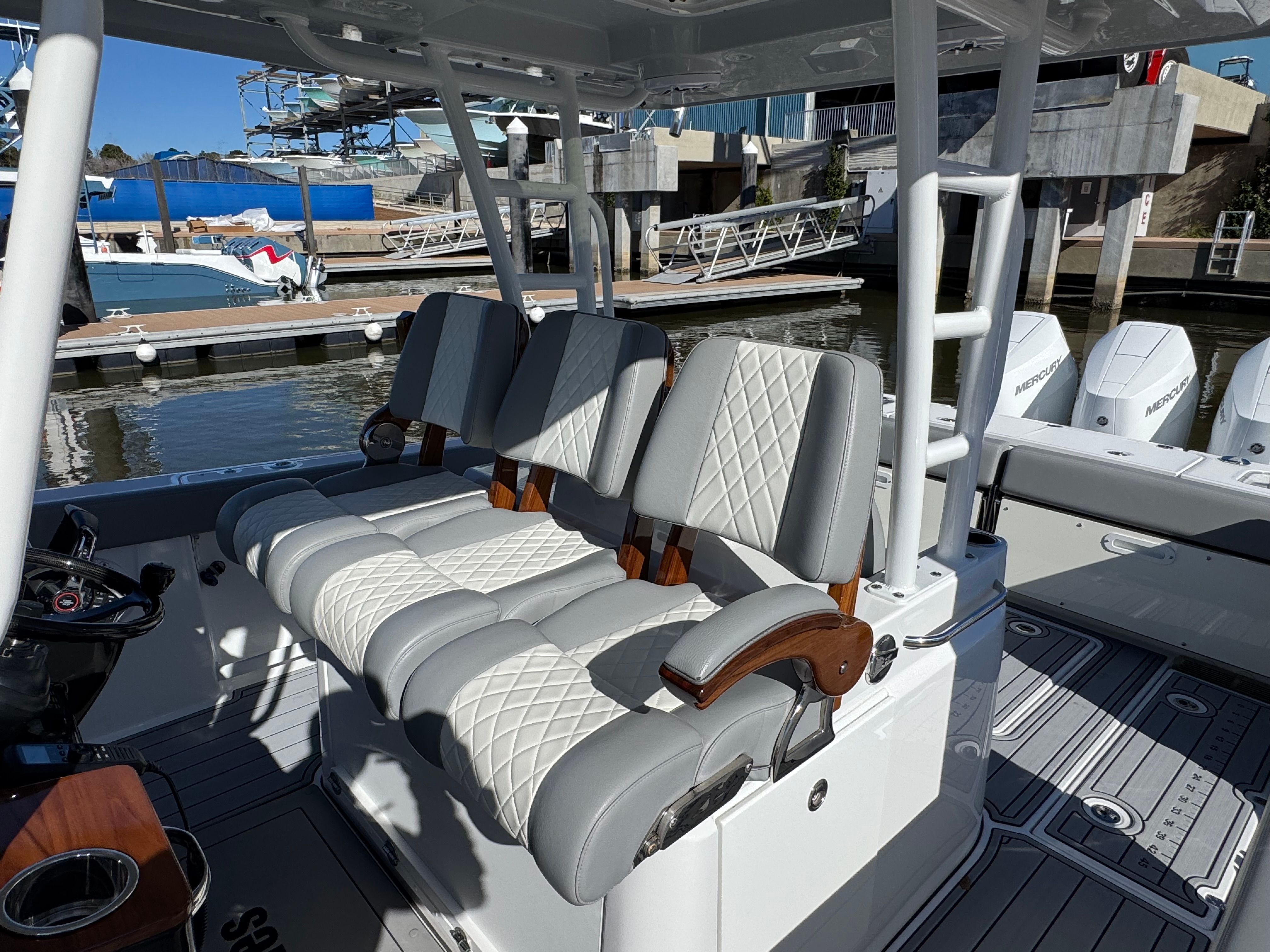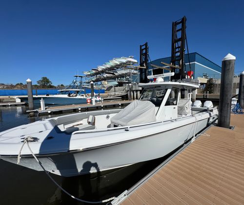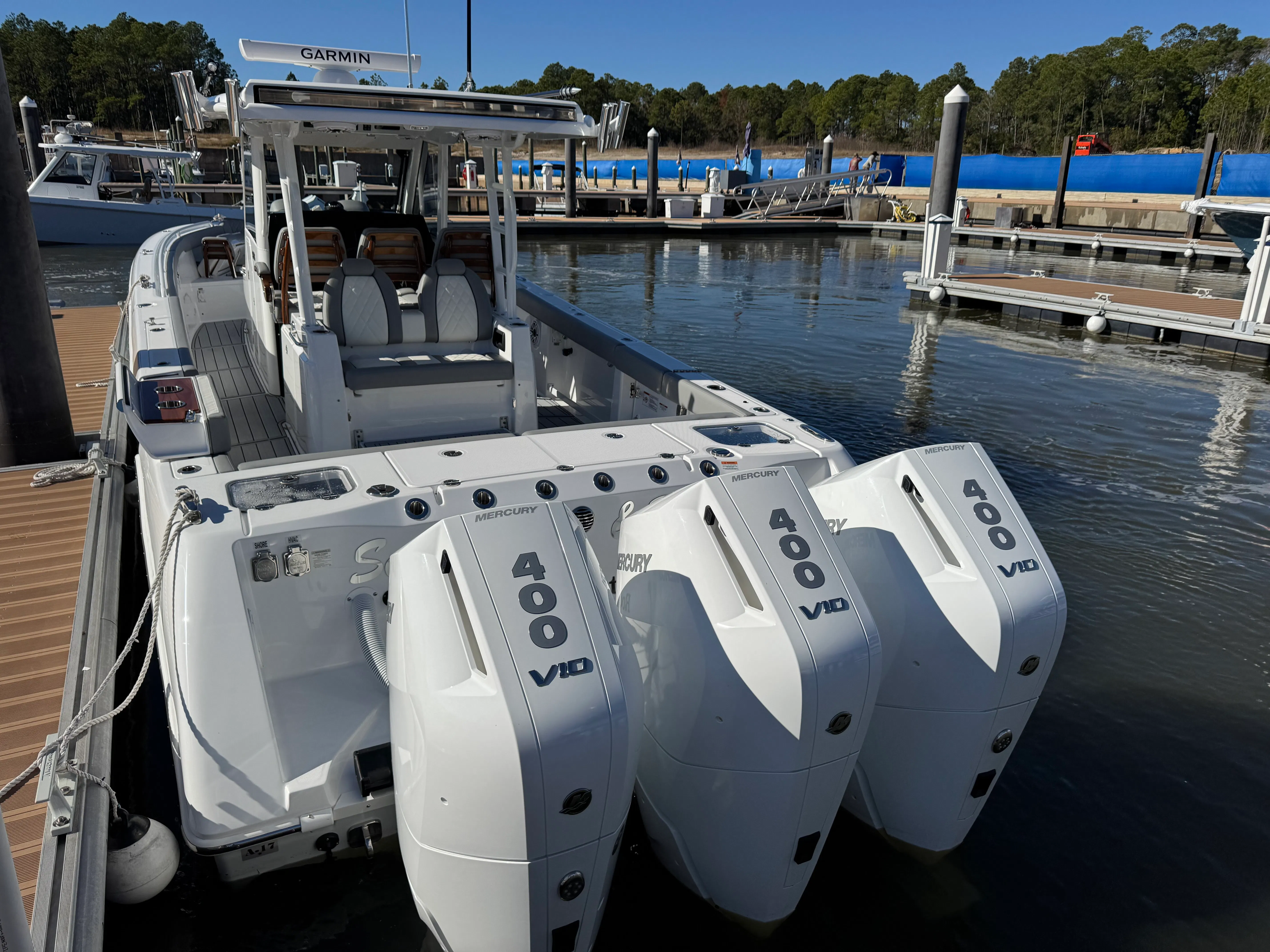 Power and precision define the performance of the Everglades 375 CC. Equipped with three high-performance engines delivering a combined 1200 horsepower, this center console boat is built to conquer the waves with confidence. The triple-engine setup ensures rapid acceleration, impressive top speeds, and smooth handling even in challenging conditions. Whether you are chasing trophy fish offshore or cruising along the coastline, the Everglades 375 CC provides the power and agility needed for any adventure. The advanced hull design enhances stability and ride comfort, allowing you to navigate with ease and peace of mind.
