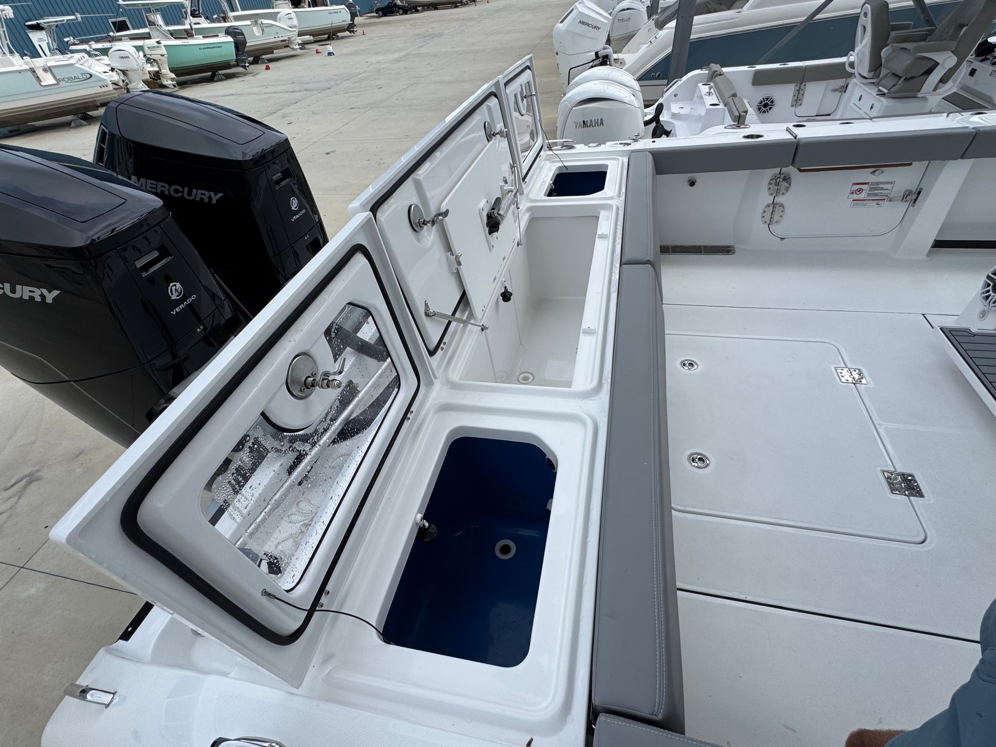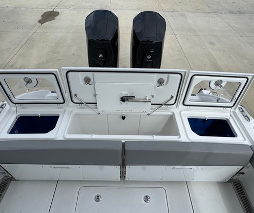 The Everglades 395 CC is designed with practicality in mind, making ownership as enjoyable as it is effortless. The engine flushing system streamlines routine maintenance, helping to preserve the longevity and reliability of your investment. The powered awning and canvas package offer flexible protection from sun and rain, ensuring comfort in any weather.Docking and maneuvering are made easier by the boat’s responsive handling and clear sightlines from the upper station. The ample deck space and smart storage solutions provide plenty of room for gear, coolers, and personal items, keeping the cockpit organized and clutter-free. Whether you are preparing for a day of fishing, water sports, or simply cruising, the 395 CC adapts to your needs with ease.