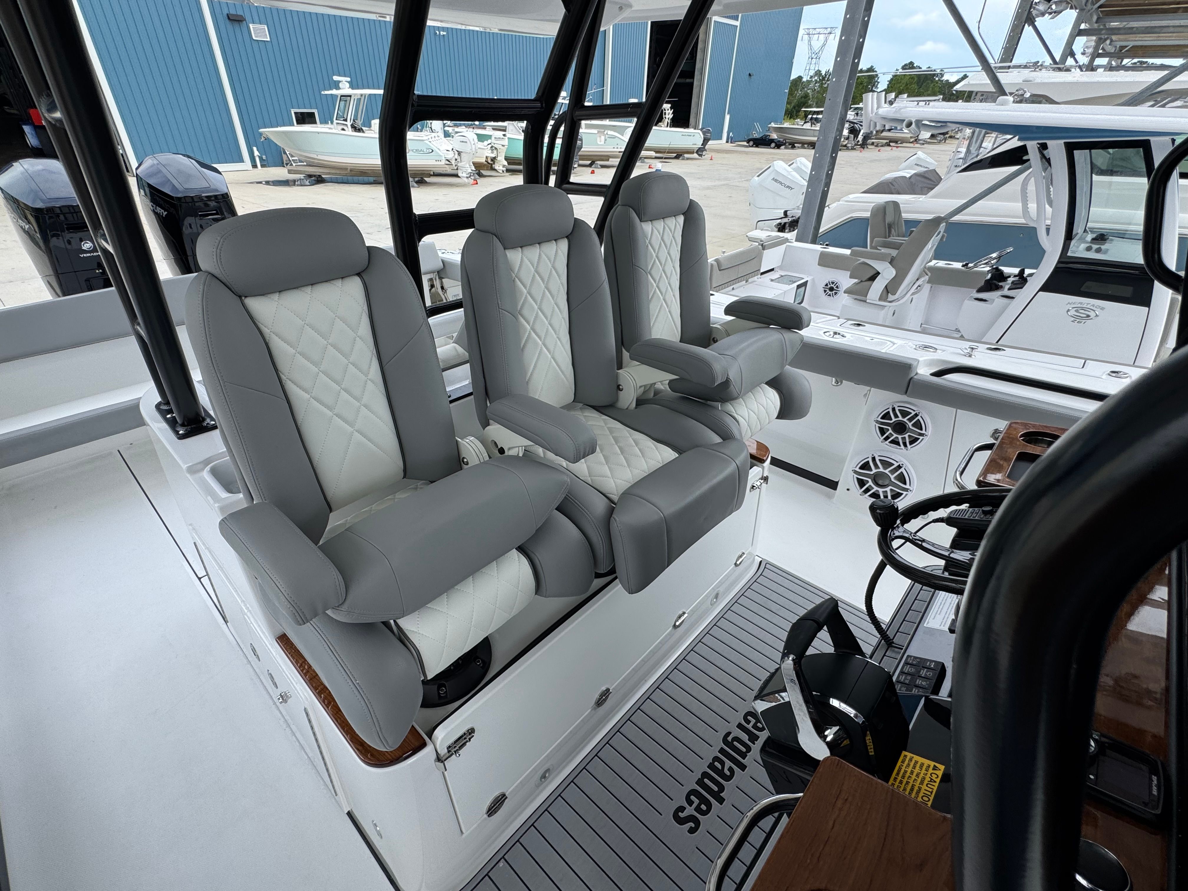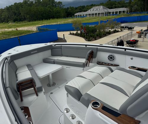 Owning the Everglades 395 CC means embracing a lifestyle of adventure, comfort, and prestige. The spacious deck layout encourages socializing, whether you are hosting a lively gathering or enjoying a quiet day on the water. The ergonomic seating and premium upholstery ensure that every passenger travels in comfort, while the advanced lighting and shading systems create an inviting atmosphere day or night.The robust construction and innovative features make this center console boat for sale an ideal choice for those who value both performance and luxury. The shock-mitigating helm seats reduce the impact of rough seas, allowing you to stay out longer and explore farther with confidence. The thoughtful integration of technology and design details, such as the carbon fiber steering wheel and teak accents, elevate the boating experience to new heights.
