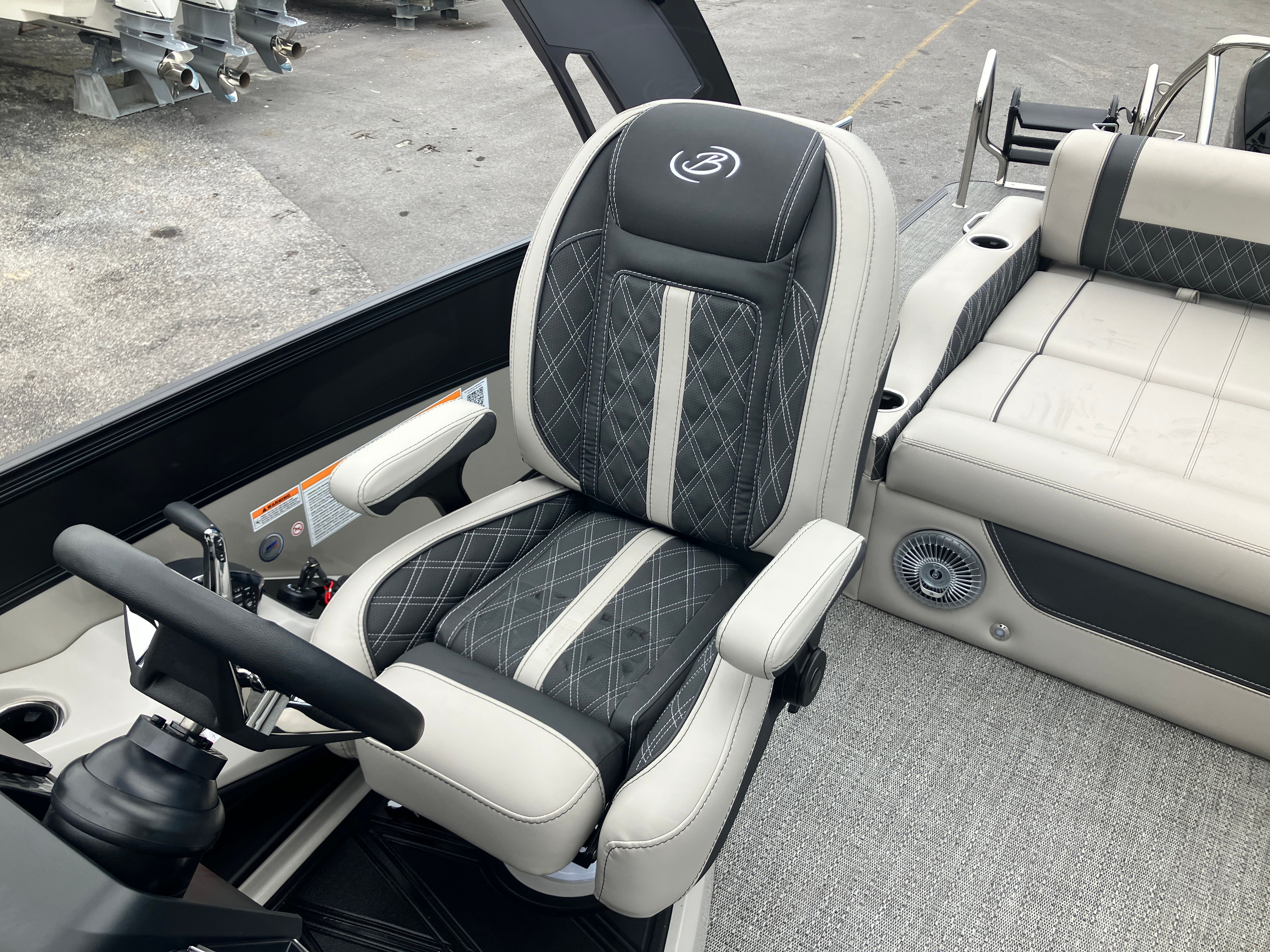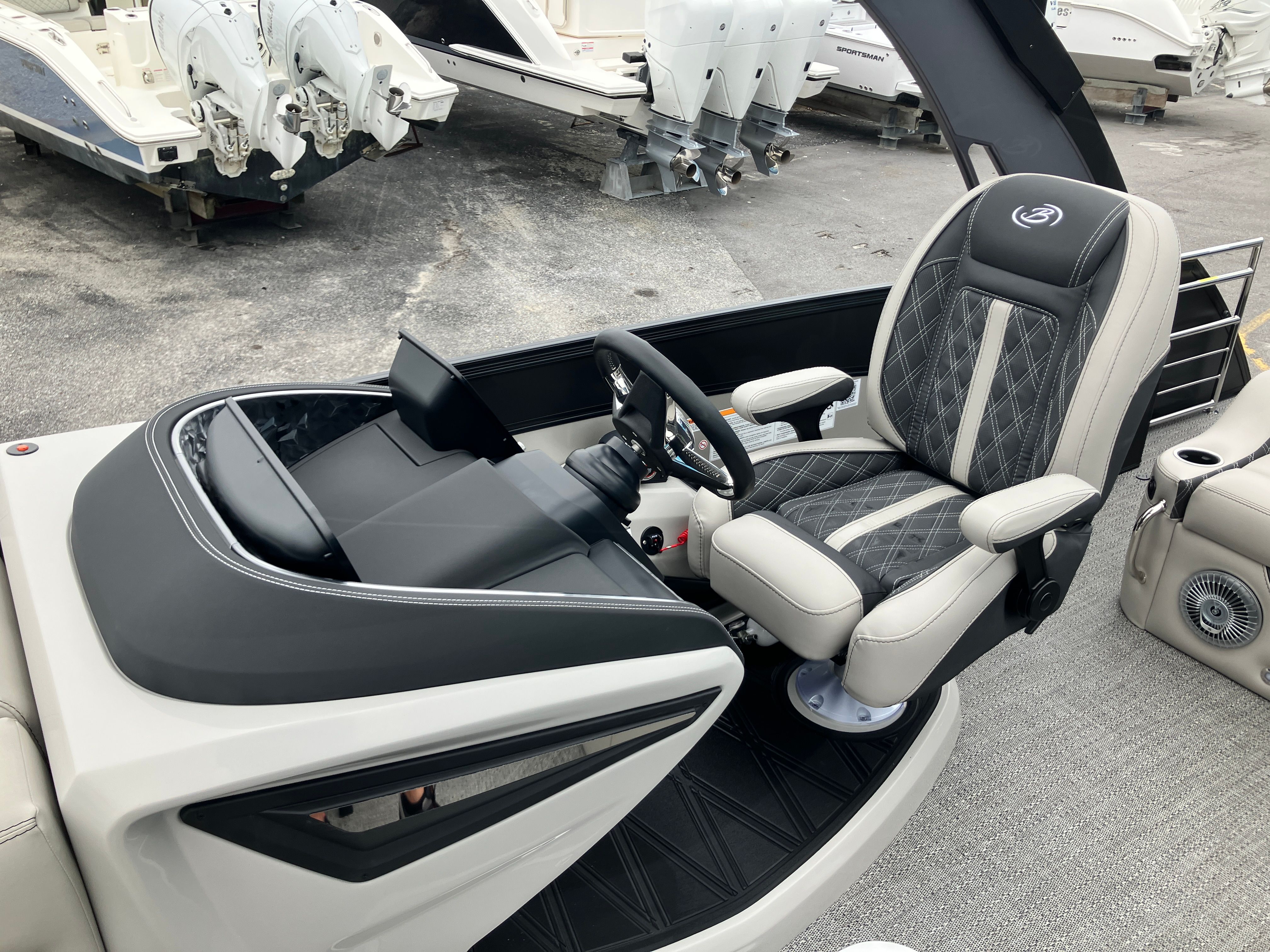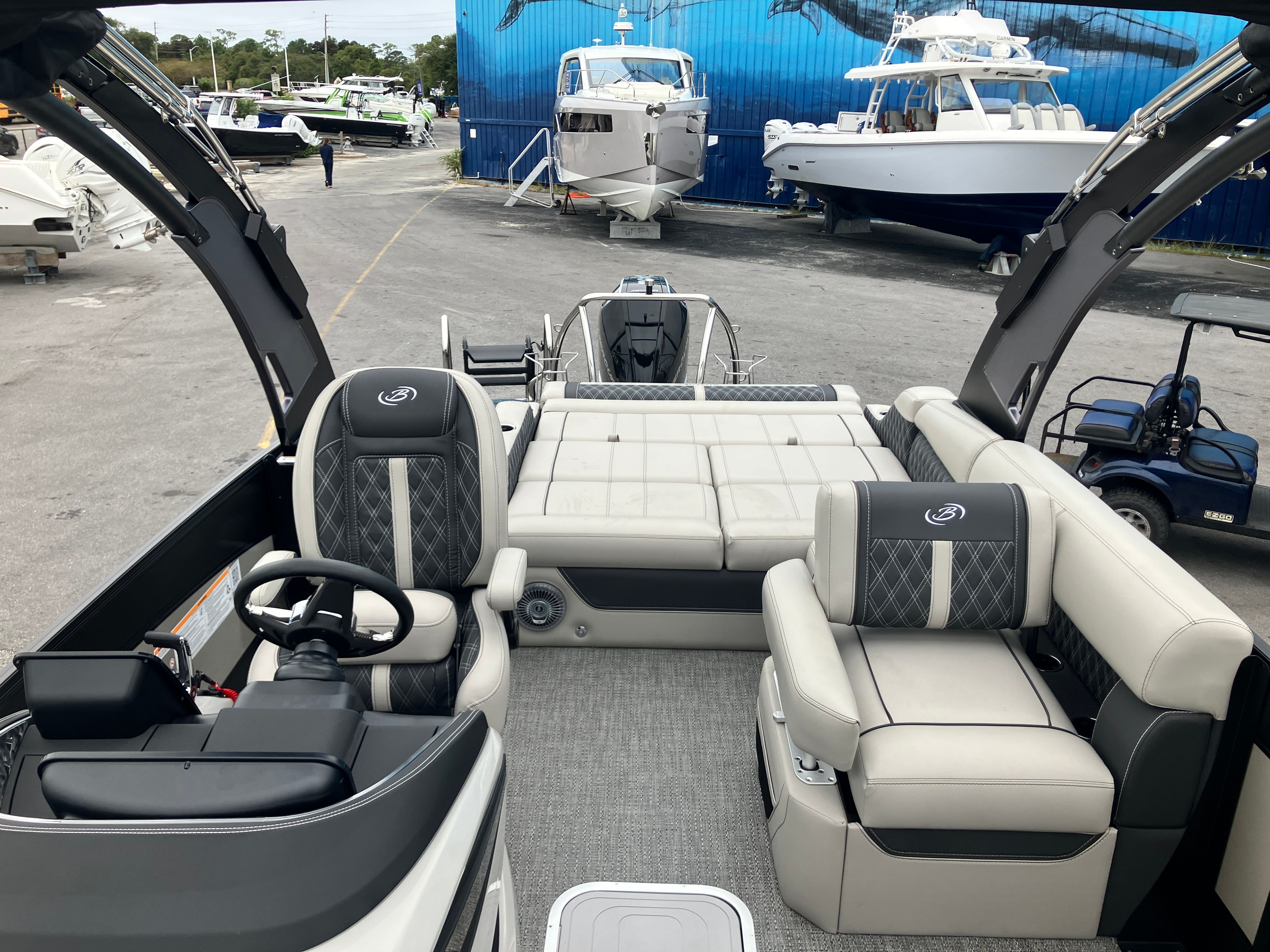 Power and precision come together in the Barletta Lusso L25UA, thanks to its robust Mercury 300L Verado V8 engine. With 300 horsepower at your command, this pontoon boat offers exhilarating acceleration, smooth cruising, and the confidence to explore larger bodies of water. The Mercury Digital DTS Pre-Rig for VERADO engines with Vessel Link ensures seamless integration and intuitive control, while hydraulic and power assist steering provide effortless maneuverability. Digital gauges keep you informed at a glance, and the rigged engine with a stainless steel prop delivers reliable, efficient performance every time you set out on the water.