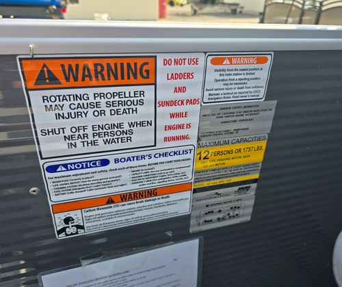 This Bennington boat for sale is loaded with features designed to enhance comfort, style, and functionality. The base furniture is upholstered in premium Simtex material, offering a soft yet durable seating surface that stands up to the elements. Both the captain's chair and co-captain's recliner are finished in Shadow Grey and Carbon, providing ergonomic support and a touch of luxury for those long days on the water. The captain's chair recliner ensures that the driver enjoys maximum comfort and control, while the co-captain's recliner invites passengers to relax and take in the scenery.The dimensional brushed logo and Anthracite paneling add a refined touch to the boat's exterior, while the Seagrass Silver full flooring provides a stylish, slip-resistant surface that is easy to clean and maintain. The thoughtful combination of base and accent colors in Shadow Grey and Carbon creates a cohesive and contemporary look throughout the vessel. Every detail, from the textured panels to the high-quality upholstery, reflects Bennington's commitment to excellence and innovation.