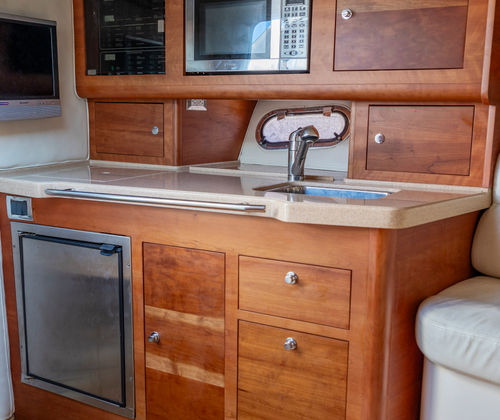 The Chris-Craft Corsair 28 is designed with practicality in mind, making ownership easy and enjoyable. The ample storage space allows you to bring along all the gear you need for a day on the water, from water sports equipment to picnic supplies. The boat’s length and layout make docking straightforward, while the twin engines provide excellent maneuverability in tight spaces. Fuel efficiency is another advantage, allowing you to spend more time enjoying the water and less time at the pump. Whether you are planning a quick afternoon escape or a full day of adventure, this bowrider is equipped to handle it all with ease.
