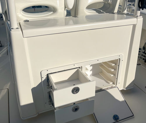 The Cobia 301 CC is packed with features that cater to both serious anglers and those seeking leisurely escapes. Its spacious Center Console layout provides unobstructed 360-degree access around the deck, making it ideal for casting lines or entertaining guests. The ergonomic helm is designed for comfort and control, with intuitive instrumentation that keeps you in command at all times. The boat’s generous length offers plenty of room for seating, storage, and movement, ensuring everyone on board can relax and enjoy the ride. Special features of the Cobia 301 CC include advanced navigation systems, ample rod holders, and a well-designed livewell, all of which enhance your fishing experience. The high-quality construction materials and attention to detail are evident throughout, from the non-slip decking to the stylish upholstery. Every element is crafted to withstand the rigors of saltwater environments while providing a luxurious feel.