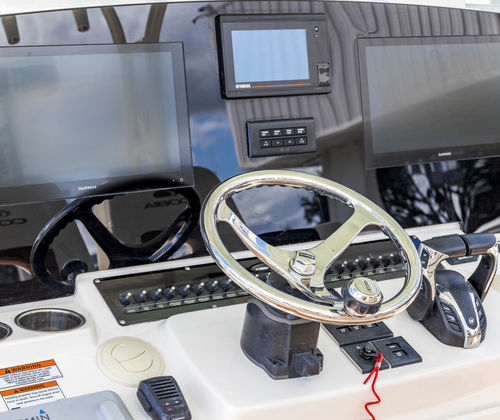 At the heart of the Cobia 350 CC’s appeal is its powerhouse performance. Equipped with three robust engines delivering a combined 900 horsepower, this center console boat is engineered for speed, agility, and reliability. The triple-engine setup ensures rapid acceleration, smooth cruising, and the ability to handle a variety of sea conditions with confidence. Whether you are heading offshore for a day of fishing or cruising along the coast with family and friends, the Cobia 350 CC offers exhilarating performance and responsive handling that will impress even the most discerning boaters. With only 166 engine hours, the engines are in excellent condition, providing peace of mind and reliability for your next adventure.