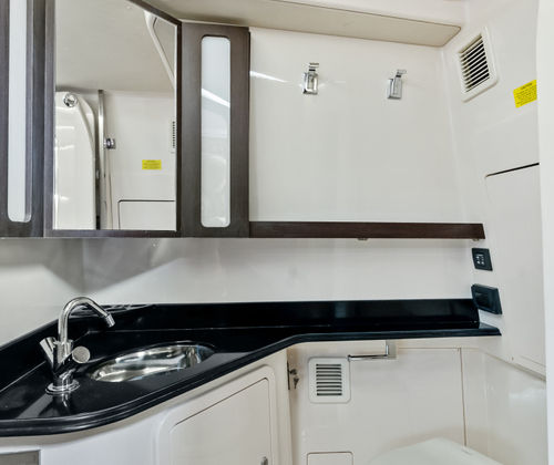 The Canyon 456 is not just about performance—it's about livable luxury. Below deck, the spacious climate-controlled cabin features: