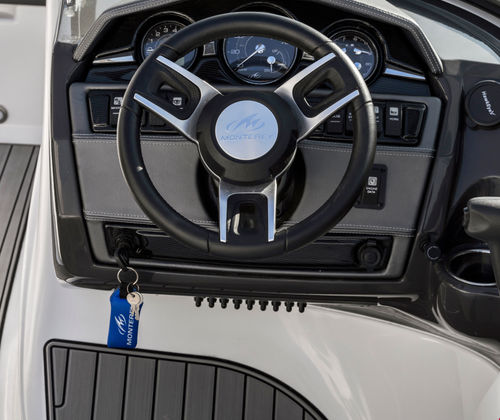 The Monterey 224FS Bowrider is packed with features that enhance both comfort and convenience. Its spacious cockpit and bow seating areas are thoughtfully designed to maximize passenger comfort, providing ample room for relaxation and socializing. The ergonomic helm station offers intuitive controls and excellent visibility, ensuring a stress-free boating experience. High-quality materials and attention to detail are evident throughout, from the plush seating to the stylish accents that define the Monterey brand.This Bowrider’s 22-foot length provides a generous amount of onboard space without sacrificing agility or ease of handling. The open bow design invites guests to stretch out and soak up the sun, while the wraparound windshield offers protection from the elements. Storage compartments are strategically placed to keep gear organized and out of the way, allowing you to make the most of your time on the water.