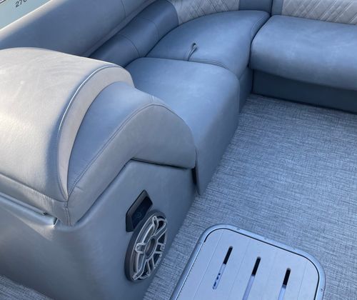 The Premier 270 Intrigue is loaded with features designed to enhance comfort, convenience, and enjoyment. Its expansive 27.5-foot deck provides ample space for guests to relax, socialize, and soak up the sun. Plush seating invites you to unwind, while the thoughtful layout ensures easy movement throughout the boat. The pontoon’s design maximizes usable space, making it perfect for hosting gatherings, enjoying meals, or simply lounging in style.Special features of this model include its impressive engine with 400 horsepower, which sets it apart from other pontoon boats for sale. The low engine hours further add to its appeal, offering peace of mind and reliability for future adventures. The Premier 270 Intrigue’s build quality and attention to detail are evident in every aspect, from the sturdy construction to the elegant finishes that define its luxury character.