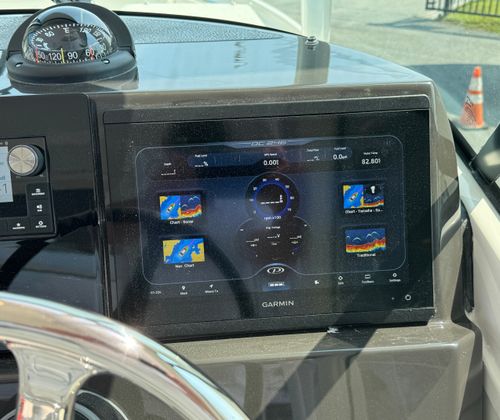 - Garmin Electronics Package (GPSMAP 8612XSV, B75M 0-7 Degree 600 watt CHIRP Transducer, NMEA 2000 Starter kit, Pursuit Custom Dash Panel, VHF Radio) (requires stereo option)