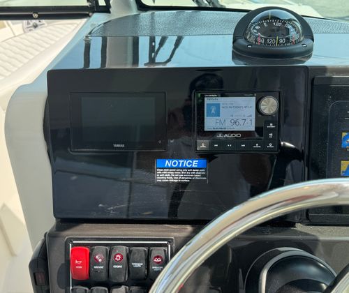 The Pursuit DC 246 is packed with premium features designed to enhance your boating experience. The upgraded upholstery in white and gray not only elevates the boat’s aesthetic but also ensures maximum comfort for you and your guests. The anchor windlass system with remote makes anchoring effortless, allowing you to secure your spot with the push of a button. For convenience and comfort, the electric fresh water head comes equipped with a 6-gallon holding tank, providing a private and functional restroom on board.Ambient lighting is provided by four mid-level cockpit accent lights in LED blue, creating a relaxing atmosphere for evening cruises or dockside gatherings. The stereo system receives a premium upgrade with JL Audio components, including a 6-channel DSP amp, subwoofer, four sport speakers with blue backlighting, and an external antenna. The Sirius receiver and included three-month subscription ensure you have access to your favorite music and entertainment while on the water. The forward poly table adds versatility to the bow area, perfect for dining, socializing, or simply enjoying the view.