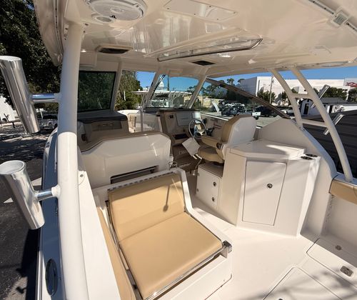 The 2017 Pursuit DC 295 measures an impressive 31.75 feet in length, offering ample space for passengers and gear. Its sleek lines and modern design reflect Pursuit’s commitment to quality and craftsmanship. As a used dual console boat, this model provides the perfect balance between value and performance, with a proven track record on the water. The DC 295’s spacious layout is ideal for a variety of activities, from sunbathing and swimming to fishing and entertaining. With its robust construction and attention to detail, this Pursuit boat for sale is built to deliver years of enjoyment and reliability.