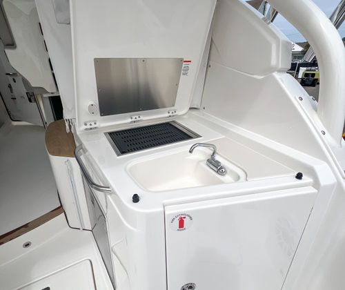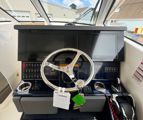 Power and precision come together in the Pursuit DC 365, thanks to its triple-engine configuration. Equipped with three engines delivering a combined 1,050 horsepower, this Dual Console boat for sale offers exhilarating speed, smooth handling, and reliable performance in a variety of conditions. The advanced propulsion system ensures quick acceleration and responsive maneuvering, making it easy to navigate busy marinas or open waters. Whether you’re chasing the horizon or enjoying a leisurely cruise, the DC 365’s powerful engines provide the confidence and capability you need for any adventure.