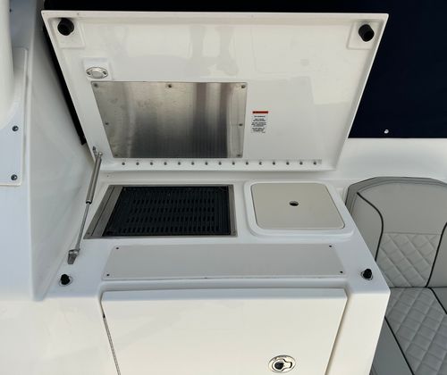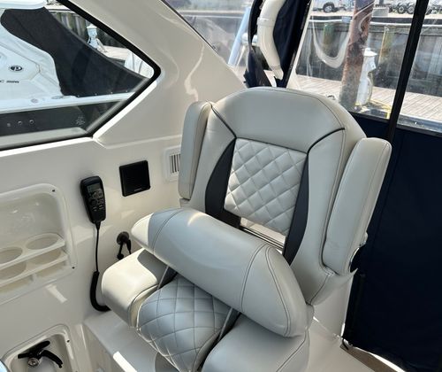 The Pursuit 355 OS is designed with both luxury and functionality in mind. Its spacious layout provides plenty of room for guests, making it ideal for social gatherings and extended trips. The cruiser’s thoughtful design maximizes comfort, with well-appointed seating areas and ample deck space for sunbathing, dining, or simply enjoying the view. The helm station is ergonomically designed for ease of use, offering excellent visibility and intuitive controls for a stress-free boating experience. Every detail of this Pursuit boat for sale reflects the brand’s commitment to quality craftsmanship and innovative design.