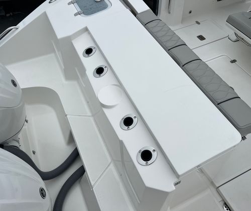 Practicality meets luxury in the Pursuit S 288 Center Console. The side door boarding ladder makes it easy for guests of all ages to board and disembark, while the cockpit table offers a versatile space for meals, games, or relaxing with a cold drink. The instrument cover and helm seat cover protect key areas from wear and tear, reducing maintenance and preserving the boat’s pristine appearance. The hardtop liner provides shelter from the elements, ensuring a comfortable environment regardless of the weather.Storage is thoughtfully integrated throughout the boat, allowing you to stow fishing gear, water toys, and personal items securely. The twin Yamaha engines deliver impressive fuel efficiency, helping you maximize your time on the water without frequent refueling stops. Maneuvering in tight spaces is a breeze thanks to the Yamaha® Joystick Control, making this Center Console boat for sale an excellent choice for both novice and experienced boaters.
