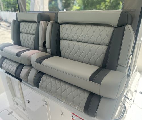 The Pursuit S 328 Center Console is loaded with premium features that elevate your boating experience. The Seakeeper Gyro Stabilization System dramatically reduces roll, providing unmatched stability and comfort even in choppy conditions. The helm console, finished in a sophisticated Carbon color, is complemented by a Fresh White hardtop liner, creating a clean and modern aesthetic. Inside, the Tranquil Sea Interior Package offers a serene and inviting atmosphere, perfect for relaxing after a day of adventure. The inclusion of a diesel genset and cabin air conditioning ensures that you and your guests stay comfortable, no matter the weather or time of day. Every detail of the S 328 is crafted to enhance your enjoyment and make every outing memorable.