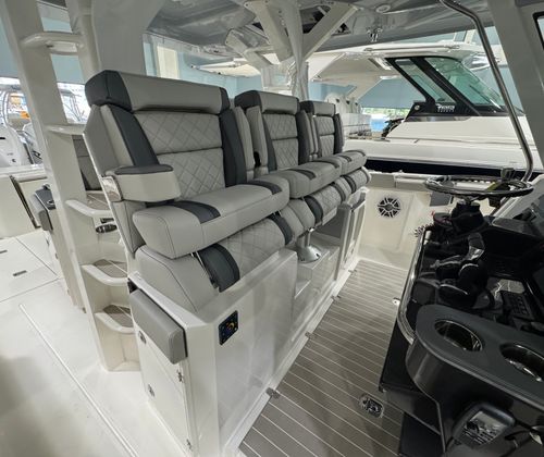 The Pursuit S 428 is as practical as it is luxurious. Its center console layout provides excellent visibility and control, making docking and maneuvering a breeze. The boat’s generous storage options mean you can bring everything you need for a day on the water, from fishing tackle to water toys and picnic supplies. The hardtop rod holders keep your fishing rods secure and organized, while the protective covers help maintain the boat’s pristine condition.Fuel efficiency is enhanced by the advanced engine setup, allowing you to enjoy longer trips without frequent stops. The boat’s robust construction and high-quality materials ensure durability and low maintenance, so you can spend more time enjoying the water and less time on upkeep.