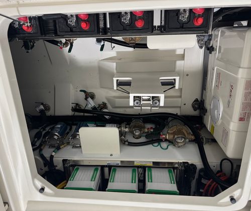 The Pursuit S 428 is packed with premium features designed to enhance your time on the water. Enjoy the comfort and convenience of an electric retractable cockpit sun shade, which provides instant relief from the sun and creates a cool, shaded area for relaxing or entertaining. The upgraded amp and speakers with zone control and Sirius satellite radio ensure you have the perfect soundtrack for every adventure, with crystal-clear audio throughout the boat.For added protection and style, the S 428 includes a White Stamoid LT helm/comp seat cover, instrument cover, and bow seating cover, keeping your boat’s interior pristine and ready for action. The 240V/60HZ cockpit air conditioning system keeps the helm and cockpit cool, even on the hottest days, while the white helm and footrest color add a touch of elegance to the command center.Fishing enthusiasts will appreciate the bolt-on hardtop rod holders (six in total), providing secure storage for your gear and easy access when the action heats up. The upgraded cockpit cooler box, now a chill box with no foam, ensures your drinks and snacks stay refreshingly cold throughout your trip. The platinum boot stripe adds a sophisticated finishing touch to the boat’s exterior, highlighting its premium status.