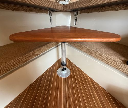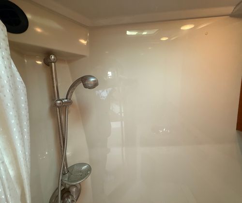 The Rampage 33 Express is powered by two robust engines, delivering a combined horsepower of 910. With only 595 engine hours, these engines are ready to provide many more years of reliable service. This impressive power ensures smooth cruising, quick acceleration, and the ability to handle a variety of water conditions with ease. Whether you’re navigating coastal waters or heading offshore, the Rampage 33 Express offers the kind of performance that makes every journey enjoyable. The twin-engine setup also enhances maneuverability, making docking and tight turns effortless, even for those new to handling a yacht of this size.