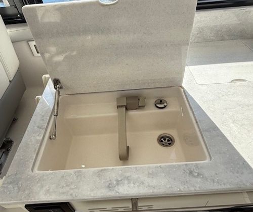 Twin Volvo V8 350 DP engines deliver smooth handling, strong acceleration, and confident maneuverability—perfect for both cruising open waters and docking in tight spaces. With only 126 engine hours, you’ll enjoy reliable performance and peace of mind for seasons to come.