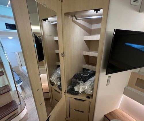 The Regal 42 Grande Coupe is designed with practicality in mind, making ownership both enjoyable and convenient. The yacht’s length provides ample storage space for all your gear, whether you’re planning a day trip or an extended voyage. The twin Volvo engines and IPS technology make docking and maneuvering a breeze, reducing stress and allowing you to focus on enjoying your time on the water. Fuel efficiency is a key benefit of the advanced diesel engines, helping you save on operating costs while maximizing your time at sea. The durable canvas covers protect your investment, ensuring that your yacht remains in pristine condition for years to come.