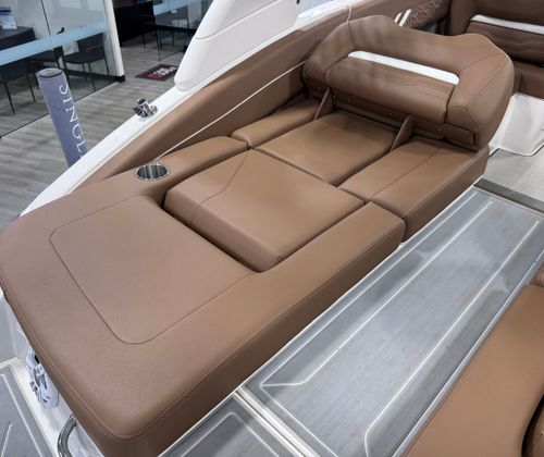 The 2025 Regal LS4 Surf is a remarkable 24.4-foot bowrider designed to deliver unforgettable moments on the water. With its sleek lines, modern hull design, and eye-catching Tahiti Beach White color, this boat exudes sophistication and energy. The Steel Gray bootstripe adds a touch of elegance, while the Black Canvas provides a bold accent that enhances its overall appeal. As a brand-new model, the LS4 Surf is ready to impress, offering the latest in boating innovation and comfort.