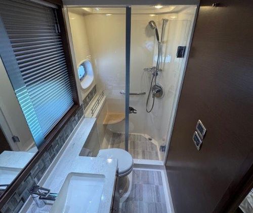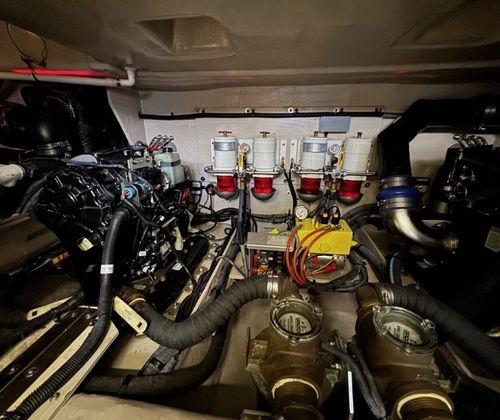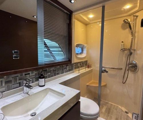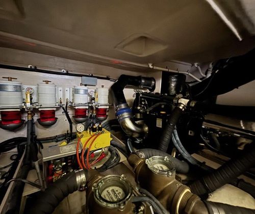 Powered by upgraded Cummins QSM11 Zeus Drives with 940 hours, delivering 715HP, this Sundancer makes cruising smooth and stress-free with joystick control and Skyhook positioning. The 21.5kW Onan generator (1,480 hours) runs quietly and reliably, keeping everything powered while underway or at anchor. All service records are available to qualified buyers.