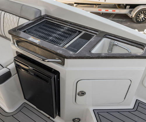 Powering the Sea Ray Sundeck 290 are two robust engines, delivering a combined 500 horsepower. With only 371 engine hours, these engines promise reliable performance and plenty of life left for future adventures. The dual-engine setup ensures smooth acceleration, responsive handling, and the ability to reach impressive speeds, whether you’re cruising along the coastline or heading out for a day of watersports. The Sundeck 290’s performance capabilities make it a top choice for those who want both excitement and dependability from their Bowrider boat.