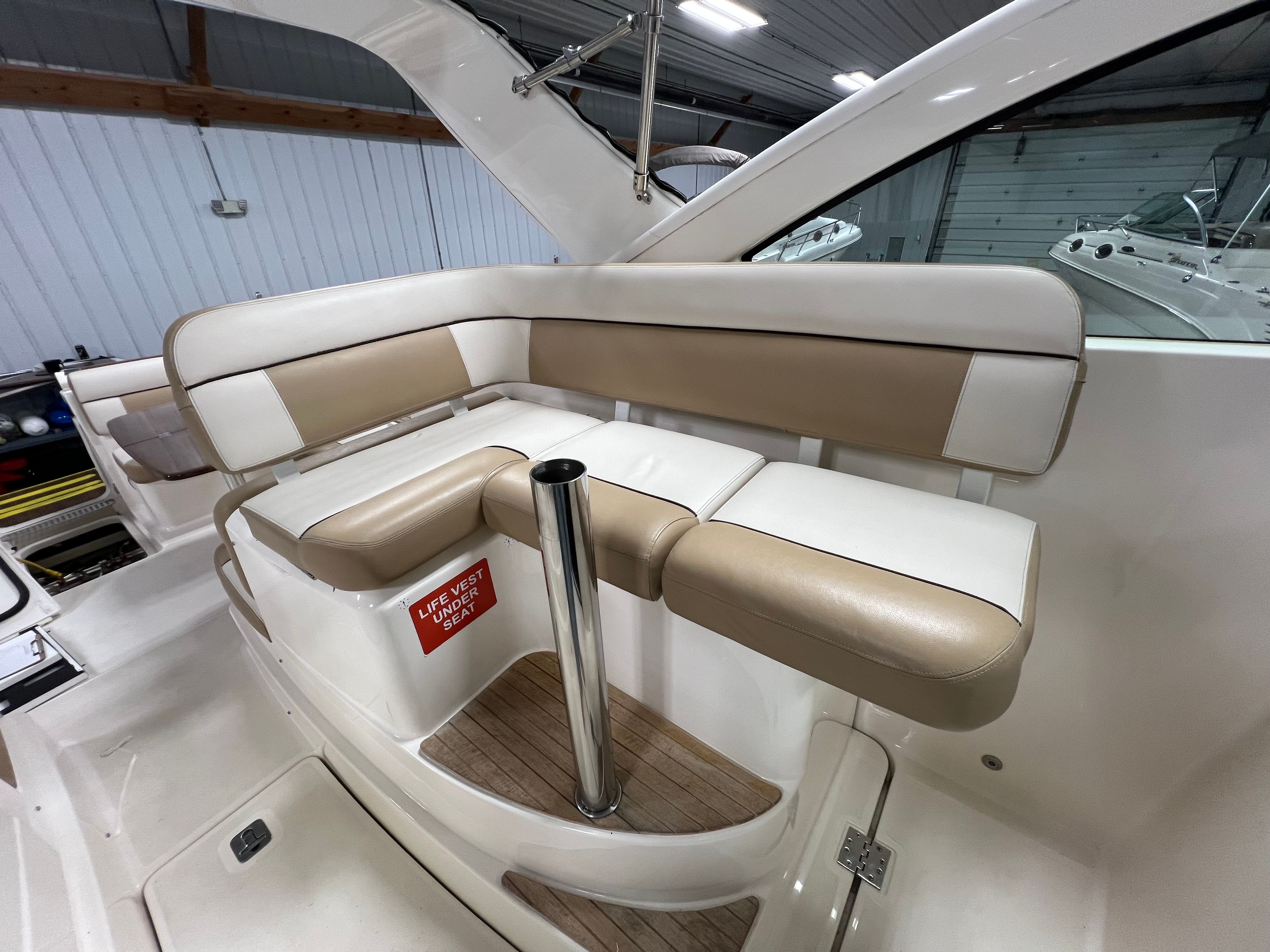 This yacht boat for sale is loaded with features designed to enhance your time on the water. The 3100 Coronet comes equipped with four batteries and a battery charger, ensuring you have ample power for all your onboard systems and electronics. The camper enclosure and navy canvas provide protection from the elements, allowing you to enjoy your yacht in comfort regardless of the weather. Entertain guests with the cockpit grill and wet bar, perfect for preparing meals and serving refreshments while anchored in a scenic bay. The cockpit storage offers plenty of space to stow your gear, keeping the deck tidy and organized.Navigation is made easy with the built-in compass, while the convertible top allows you to adjust your shade and shelter as needed. The countertop adds a touch of convenience for food prep or serving, making onboard entertaining effortless. Every feature has been thoughtfully integrated to maximize comfort, convenience, and enjoyment, ensuring that your time aboard the Tiara Yachts 3100 Coronet is always memorable.