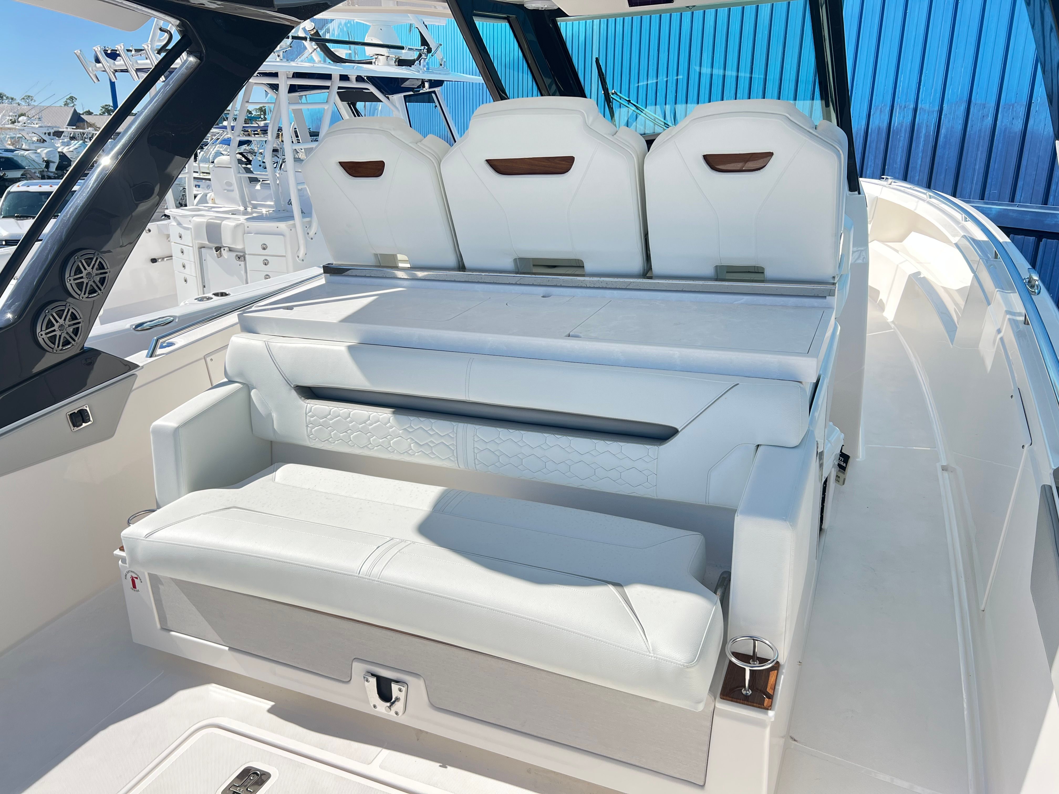 Power and precision define the performance of the Tiara Yachts 34 LS. Equipped with twin Mercury 400 V10 JPO engines, this yacht delivers a combined 850 horsepower, providing exhilarating acceleration and smooth cruising. The advanced joystick piloting system (JPO) ensures effortless maneuverability, making docking and navigating tight spaces a breeze. Whether you are cruising along the coastline or heading out for a day of offshore adventure, the 34 LS offers a responsive and stable ride that inspires confidence at every turn.