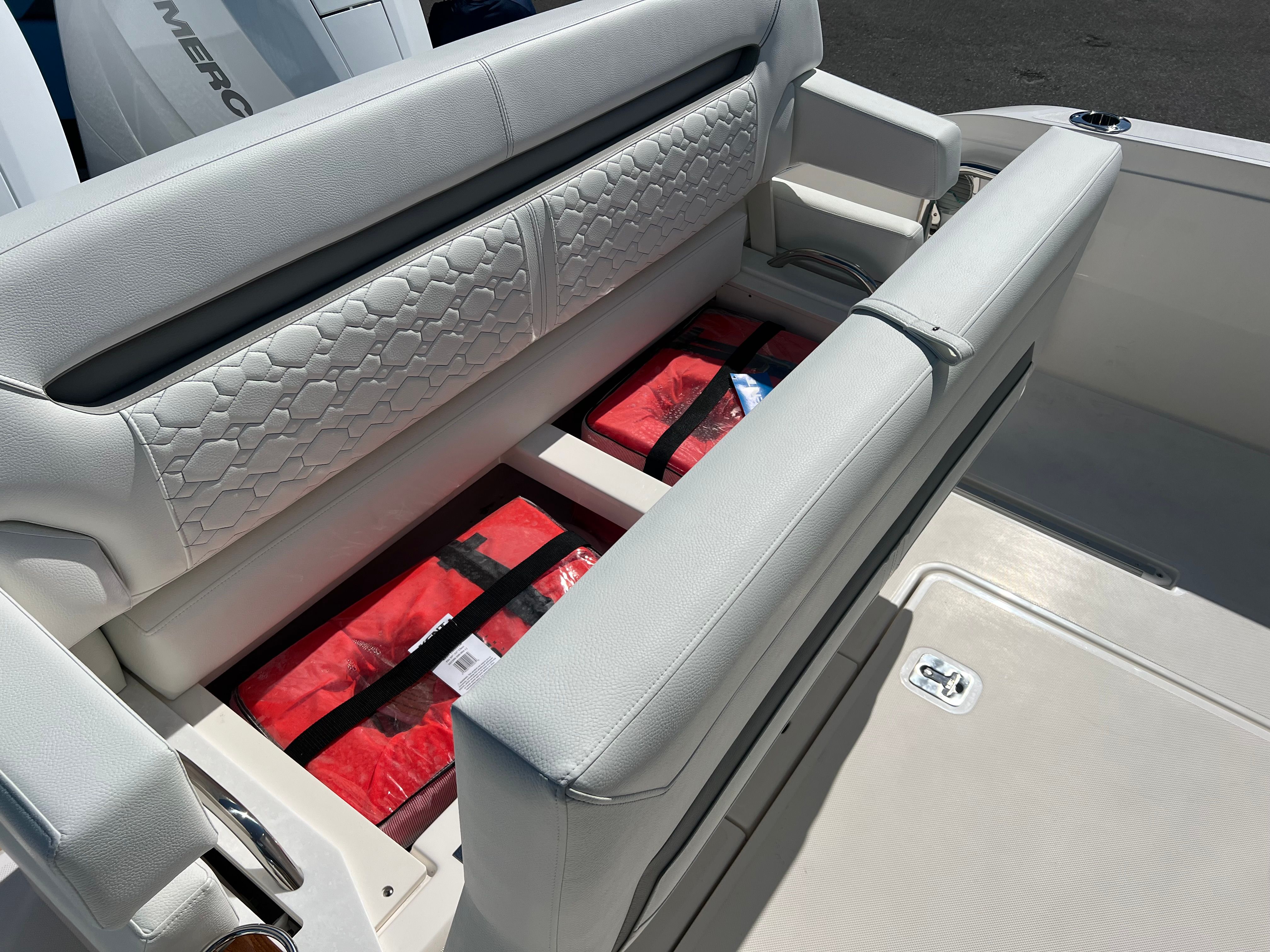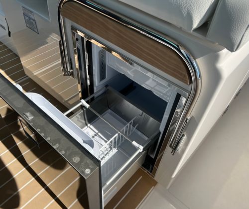 The Tiara Yachts 34 LS is as practical as it is luxurious. Its manageable size and advanced joystick piloting system make docking and maneuvering simple, even for less experienced boaters. The generator ensures you have power for all your appliances and electronics, while the macerator streamlines waste management for longer trips.Storage solutions are thoughtfully integrated throughout the yacht, providing ample space for gear, water toys, and personal belongings. The synthetic teak deck is not only beautiful but also easy to maintain, allowing you to spend more time enjoying your yacht and less time on upkeep. Fuel efficiency is optimized by the powerful yet efficient Mercury engines, making longer journeys more economical and environmentally friendly.