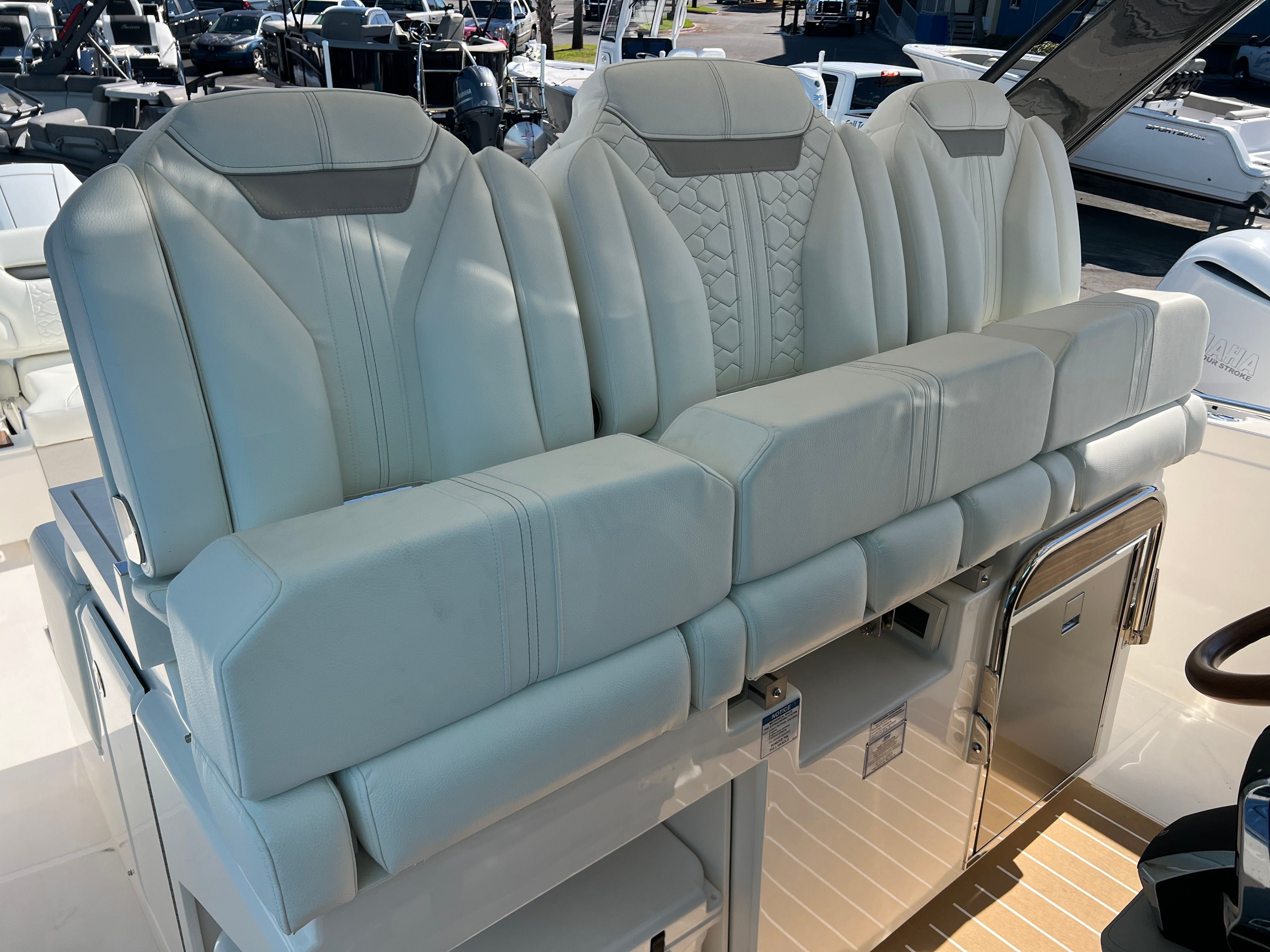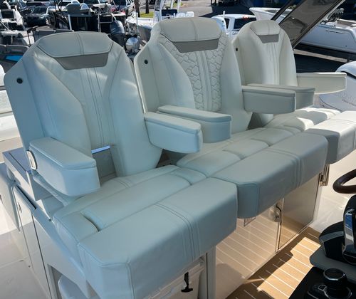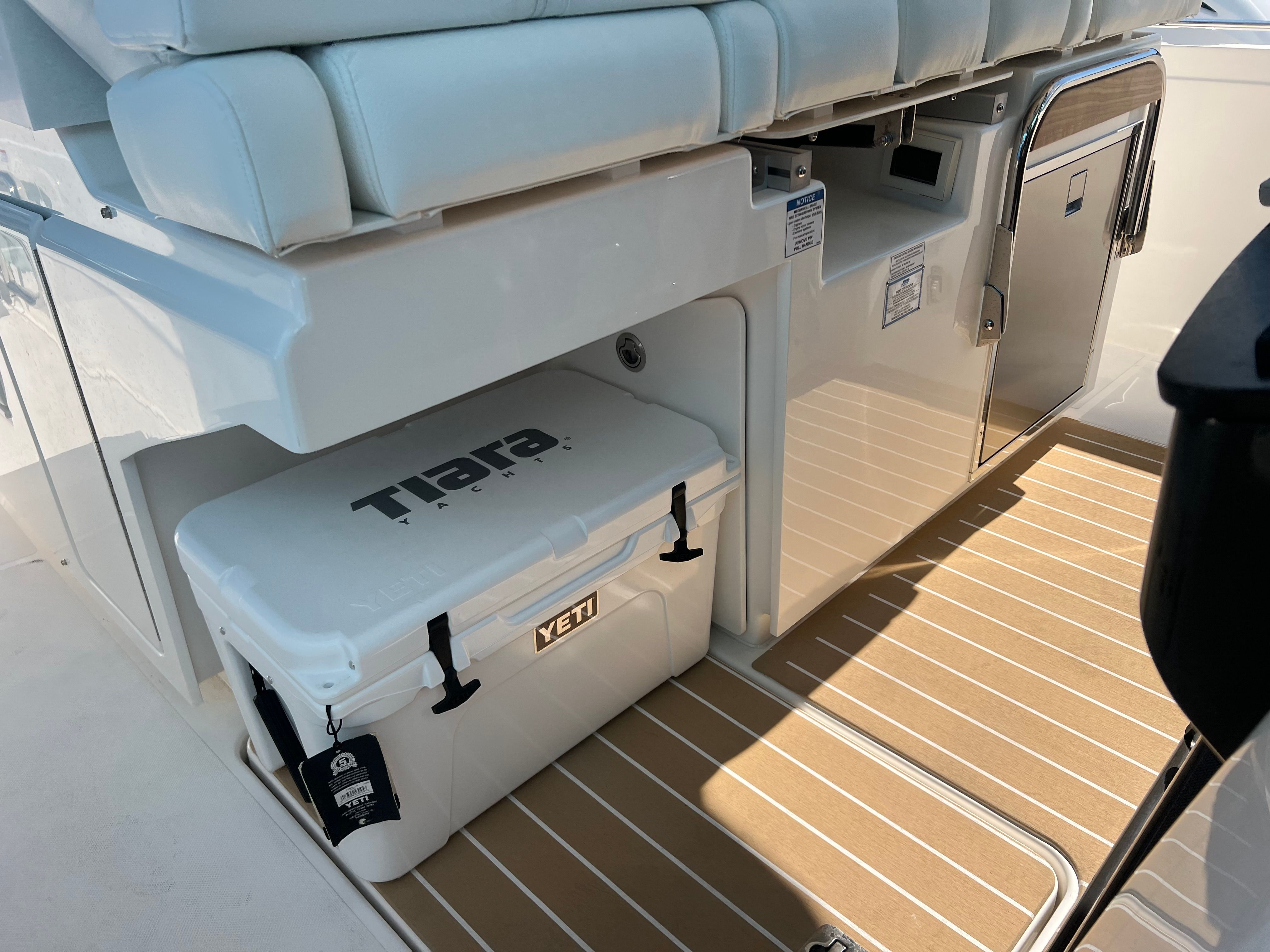 The Tiara Yachts 34 LS is loaded with premium features that enhance both comfort and functionality. The Seakeeper SK2 stabilizer minimizes roll and ensures a smooth, enjoyable ride even in choppy conditions, allowing you and your guests to relax and enjoy every moment on the water. The onboard generator provides reliable power for all your electrical needs, while the macerator adds convenience for waste management.For climate control, the Cool Helm Air Conditioning with Heat keeps the helm area comfortable in any weather, ensuring the captain and guests stay refreshed during long days on the water. The natural synthetic teak deck adds a touch of elegance and durability, creating a warm and inviting atmosphere throughout the yacht.Outdoor entertaining is elevated with the electric grill located in the cockpit, perfect for preparing delicious meals while enjoying the open air. The aft cockpit table provides a versatile space for dining, socializing, or simply taking in the views. The yacht’s fiberglass construction ensures strength and longevity, while the forward Mediterranean-style sunshade offers protection from the sun, allowing you to relax in comfort on the lounge module.