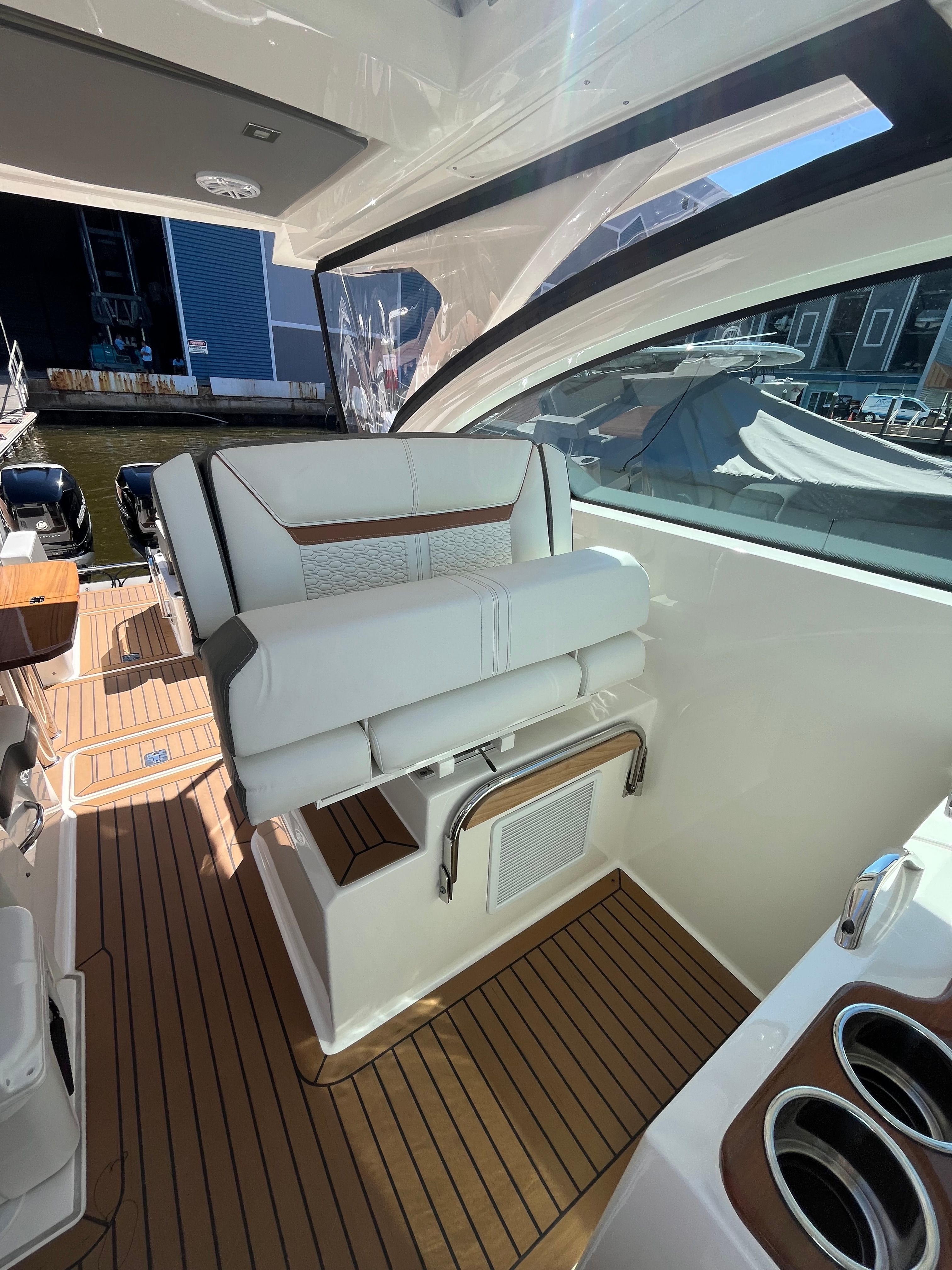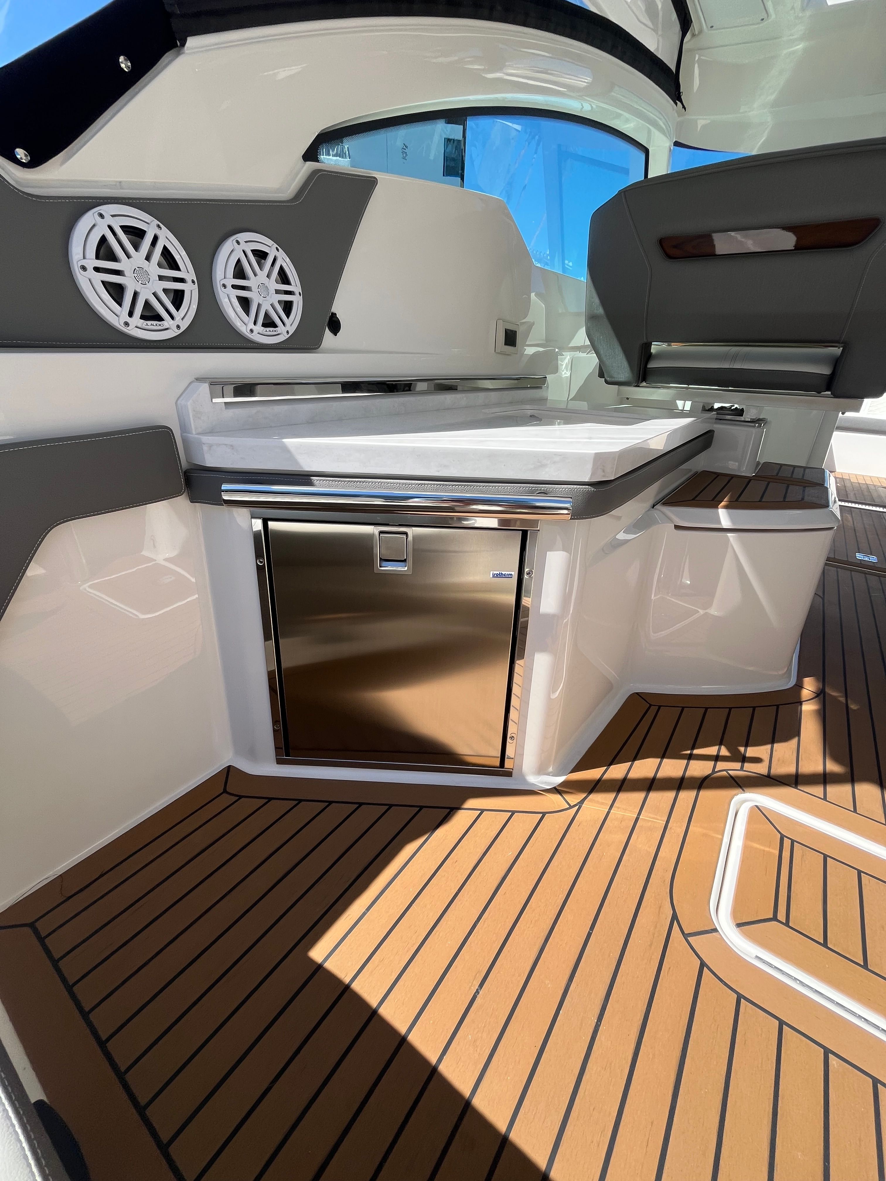 The Tiara Yachts 34 LX is packed with features that elevate your boating experience. Its spacious deck layout is designed for both relaxation and entertainment, with ample seating and open areas for socializing. The yacht’s premium materials and finishes reflect Tiara Yachts’ commitment to quality, ensuring durability and a luxurious feel throughout. The 34.75-foot length provides generous space for guests, while the thoughtful design maximizes comfort and convenience. Whether you are hosting a sunset cocktail party or enjoying a quiet afternoon on the water, this yacht boat for sale delivers the perfect setting.